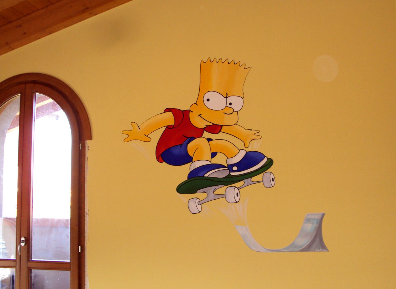 Bart Simpson sul muro della stanza di Stefano. Painting, Illustration, Acrylic, 150x180x1cm Acrylic immagine simpson cartoon fumetto trompe l'oeil Added 14 years ago 5 I Like I don't like 12 Comments 420 Visits Share Facebook Twitter Google + Has been liked by 5 Danijela Glavaš Artist - Zagreb, Croatia Tanya Bartolini Premium Artist - Milano, Italy Rossella Santoro Artist - Roma, Italy Cat Photographer - Strasbourg, France monica zambon Artist - San Remo, Italy Say something Comments 10 14 years ago Maria Cristina Neviani Artist Un personaggio divertente che rallegra già al mattino... 14 years ago Lucia Ghirardi Artist Bello! LUCIA GHIRARDI 14 years ago benny Artist molto simpatica. 14 years ago france Artist è fantastico!!!!! 14 years ago Nessuno Photographer Splendido lavoro! 14 years ago Paul De Haan Artist Bellissimo il disegno e l'effetto! 14 years ago GABRIELE SCARTOZZI Artist COMPLIMENTI BRAVA C OME SEMPRE ,AUGURI PER LE FESTIVITA' 14 years ago maurinomangiapanino Premium Art lover sembra il muro... brava 14 years ago monica zambon Artist Brava Barbara, sembra uscire dal muro! 14 years ago Souad Nasr Makhoul Artist You have the skill also in animation art, very nice! view all 12 comments Say something You must login or Sign Up to write a comment Join