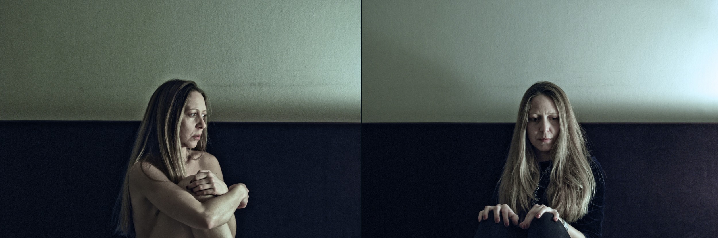 This series of self-portraits represents a reflection about being. I ask myself what we are and how our appearance is connected to our intimate being, how our social-self interacts with our deep-self, that one which is rarely or never evident. The couples of portraits show three possible encounters. The first shows how my intimacy observes itself: both naked, they are represented in the context of the deep intricacy of my inner reality, which is always changeable and that we are the only available to catch in moments of rare awareness about ourselves. In the second couple my inner identity is naked and observes my social identity. In the third couple both my inner and my social selves are seen through public observation. Here the observer meets my dressed social-self and feels that he can completely and totally catch and know it in its; at the same time he comes into contact with my inner identity. The observer has an uncertain and wavering knowledge because the nature of our inner-self it to change relentlessly and that is why we cannot ever say to know it conclusively.