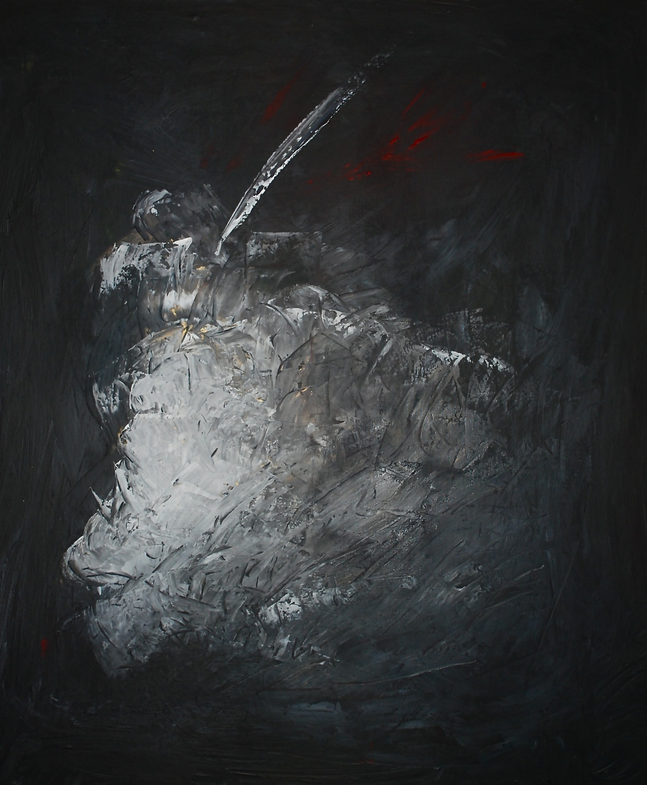 The white, black, a bit, the trail, the red. A primitive pattern that creates a moment of aggression. The early history of every living being.