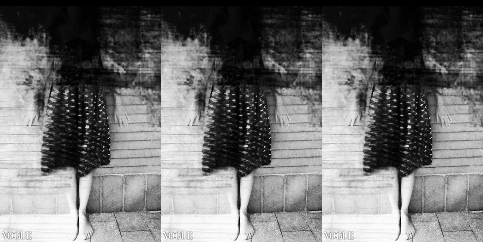 ...Fantasmatico ed etereo:struggente self portrait dove "l'identità" sembra trina e dove la" memoria" del tempo sembra intaccare la forma rendendola evocazione di un passato che è già eternazione del momento;il tre come cifra simbolica... (Sono certo che alla Woodman sarebbe piaciuto...)