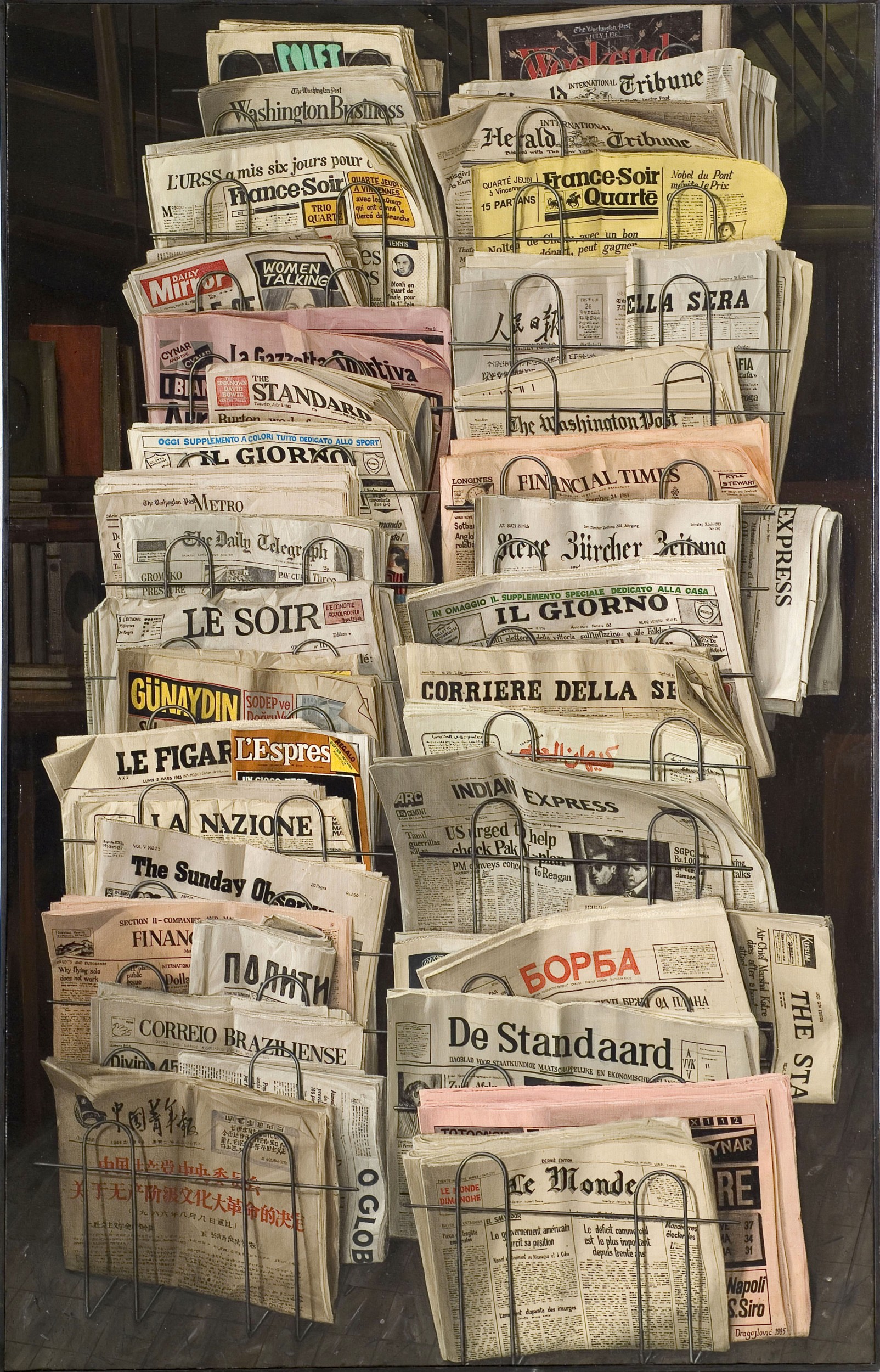 7th power Painting, Still life, Political / Social, Oil, 105x165cm Canvas Oil still life realism newspapers Various world newspapers on one newsstand. The painting was done in the 1990's when the press was a very powerful tool. Added 12 years ago 2 I Like I don't like 3 Comments 162 Visits Share Facebook Twitter Google + Has been liked by 2 Tanya Bartolini Premium Artist - Milano, Italy Cristina Fava Artist - Chioggia, Italy Comments 3 12 years ago IRA TUM Artist Bell'idea e bellissima pittura! 12 years ago GIAN LUCA BARTOLI MARIANI Artist semplicemente MERAVIGLIOSA!!! 12 years ago Cristina Fava Artist Straordinario!.... Say something You must login or Sign Up to write a comment Join