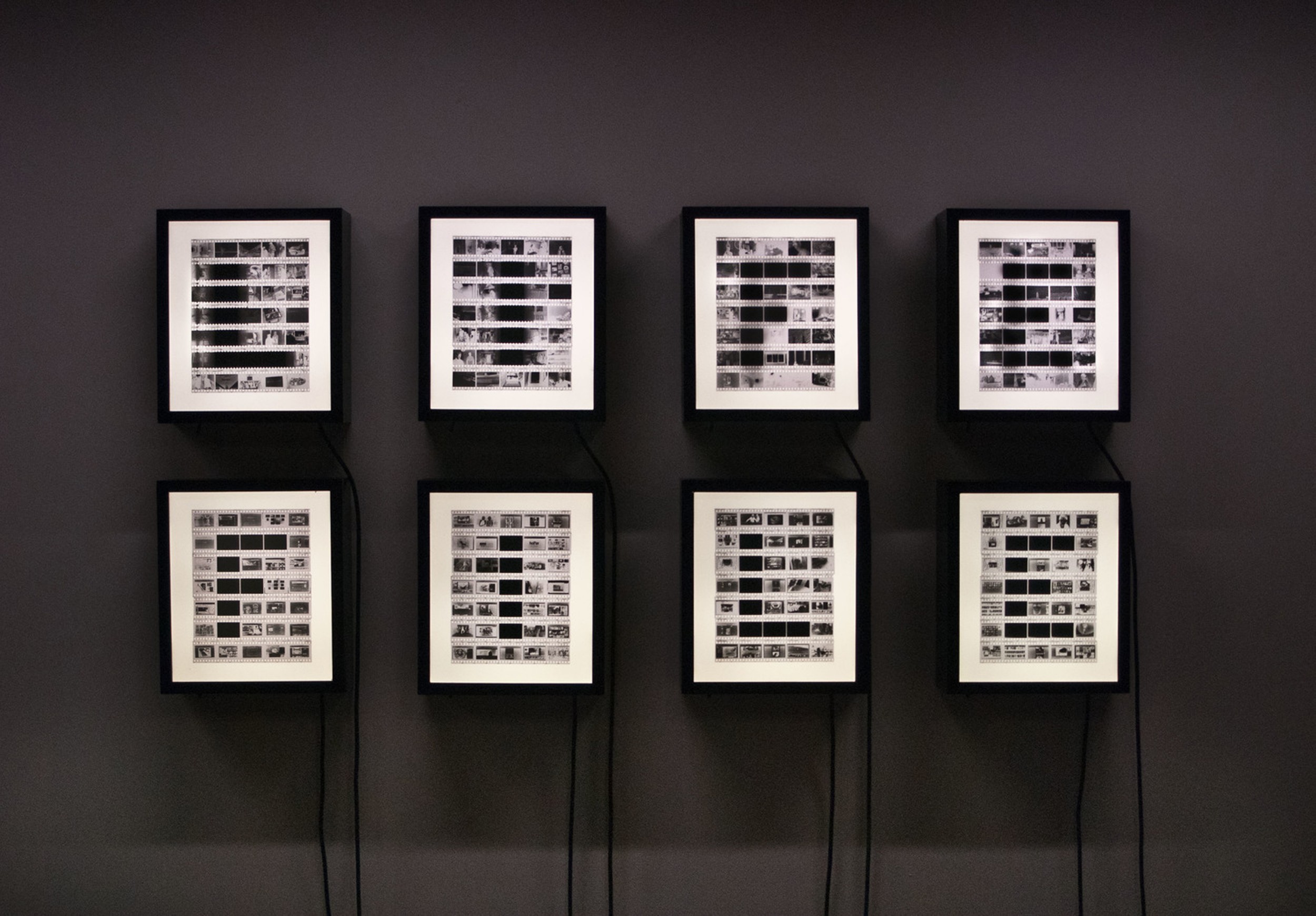 The work is composed of 8 lightbox (1 for each letter) each 24x34x10