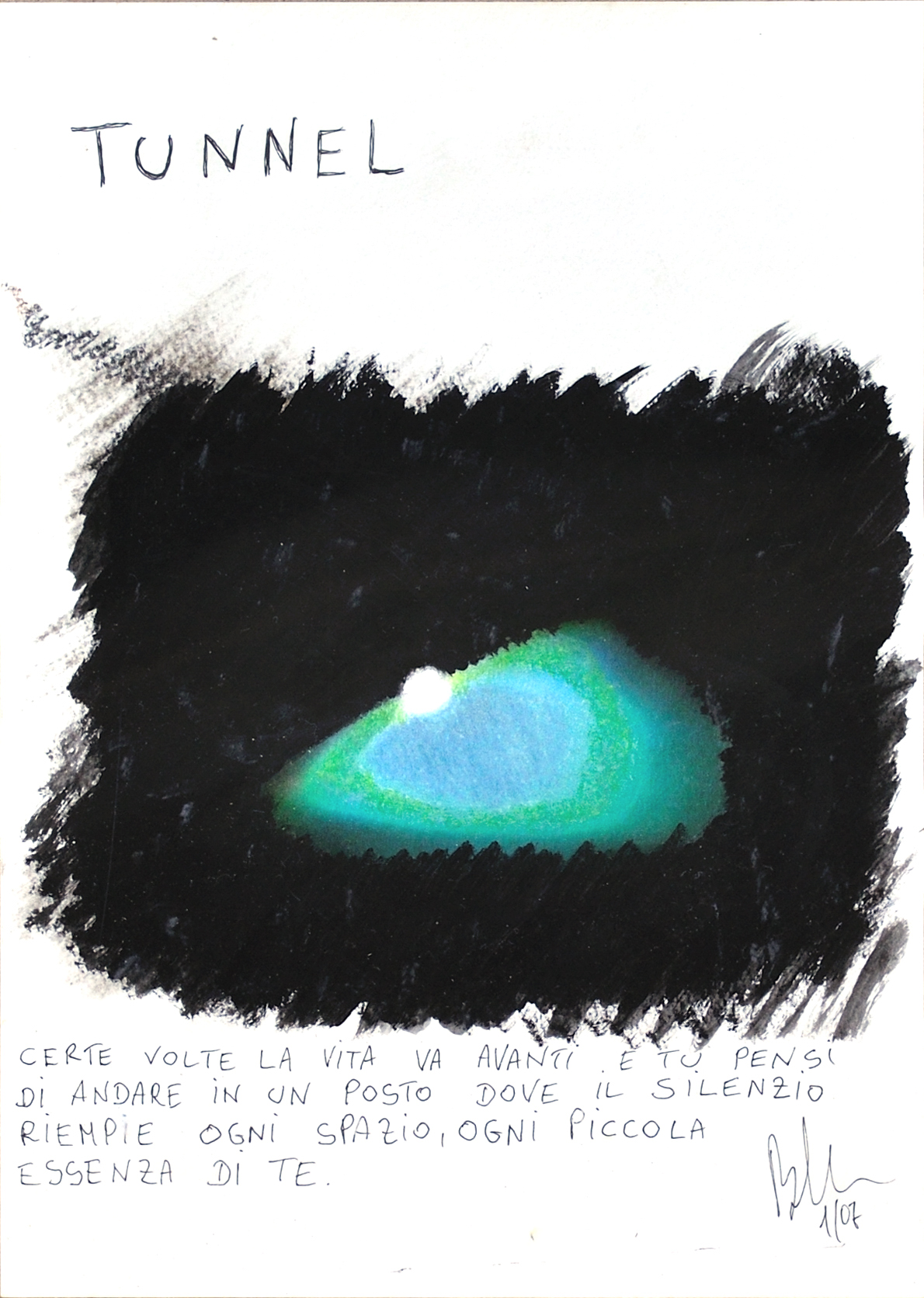 Tunnel Painting, Symbol / Letter, Mixed technique, 70x50cm Light Canvas Mixed technique via vita amore tunnel morte love ansia anxiety panico eutanasia Anxiety in your head. If only I could just breath. Sense of impending death. Through the tunnel, what I would call Grand Tour de vie, is streaming towards us. We are just making up a view of the afterlife. Added 16 years ago 1 I Like I don't like 0 Comments 309 Visits Share Facebook Twitter Google + Has been liked by 1 Carmela Perna Artist, Painter - Roma, Italy Comments 0 Say something You must login or Sign Up to write a comment Join
