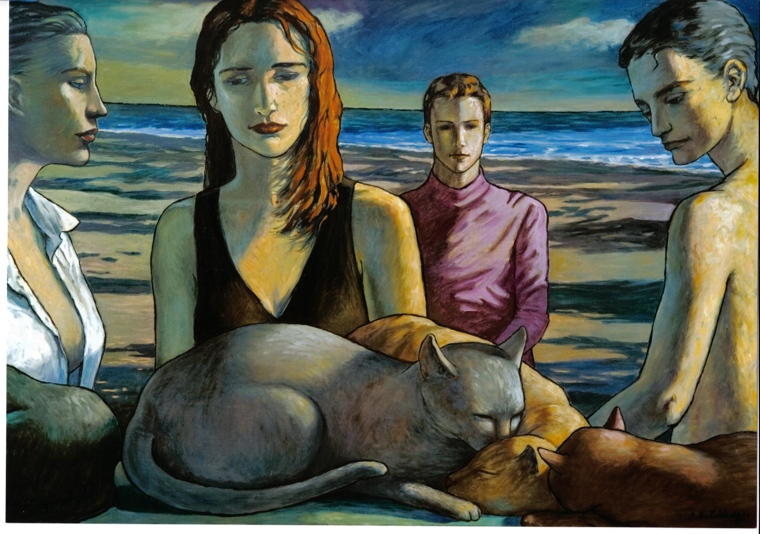 Molto bella la tua pittura ! Bellissima l'importanza che dai ai contorni : tutto deve essere chiuso e limitato dal segno , e rigorosamente nero ! Anch'io ho un gatto e colgo appieno la magia del quadro! Complimenti ancora .