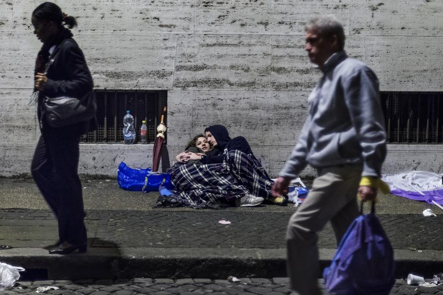 The vigil of prayer and singing covers of slowly makeshift tents and sleeping bags every available space near St. Peter's Square to go off to sleep.