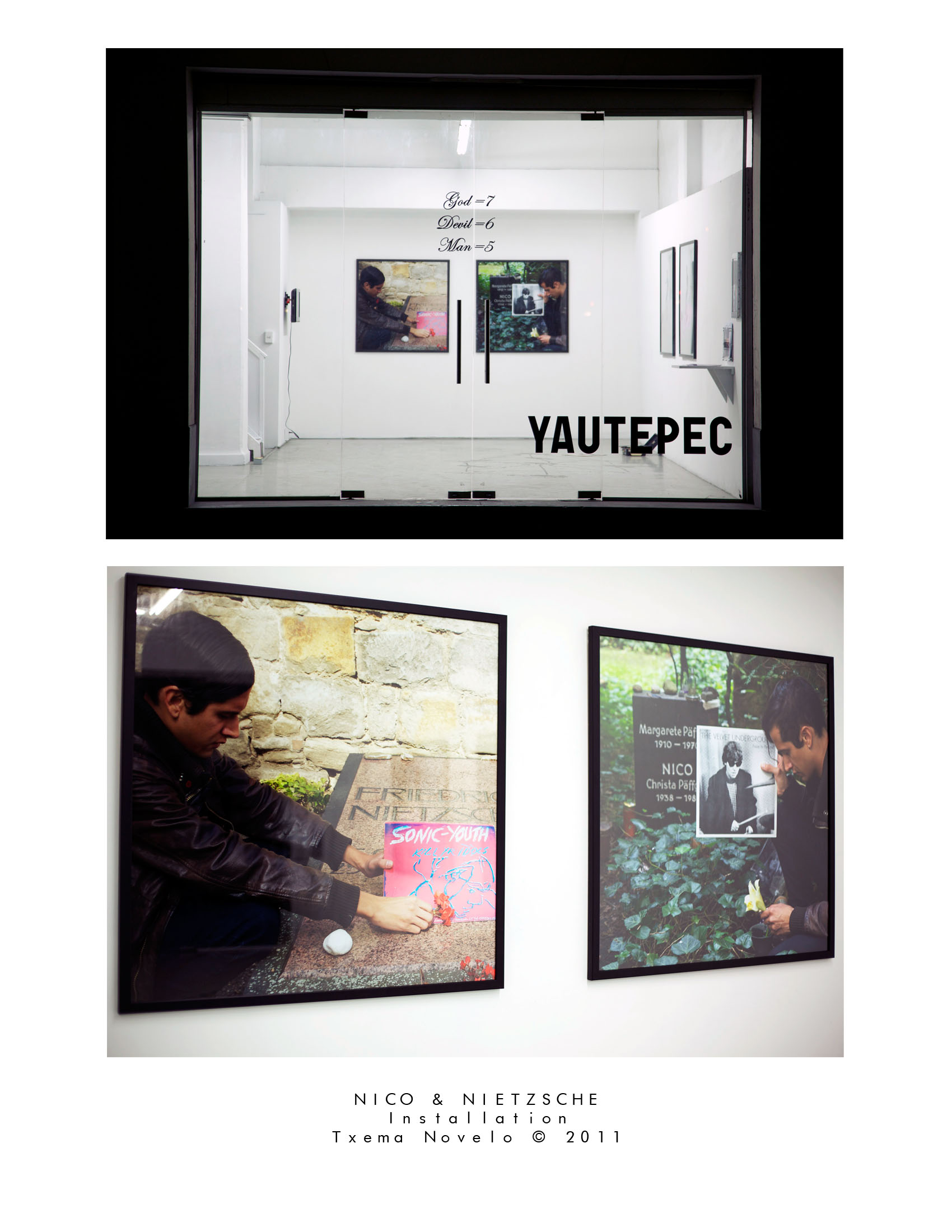 I try to identify rock ‘n’ roll as the active carrier between fandom and religious fanaticism, by placing in the epilogue in Hey Man / Amen, a diptych titled Nico and Nietzsche. During my residency in Leipzig, I went to place records as offerings on both of their tombs; Sonic Youth’s Kill Yr Idols (1983) on that of Nietzsche (the idol killer himself), while on Nico’s I put The Velvet Underground’s bootleg Praise Ye the Lord (1988) following the alchemist figure of the Opus Magnum of the Red Groom and The White Bride.