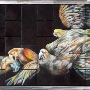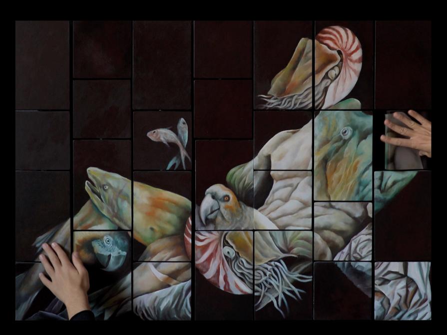 Her art expresses itself through a mobile code, that is an autograph brand but, above all, a linguistic scheme between aesthetics and content. My works are pictorial puzzles offering multiple compositions, freely constructible or deconstructible. By rotating the parallelepipeds on a grid you can compose an image or interweave different images. An interaction with the viewer, who will be able to change the sequential order and, above all, to enter the dynamic principle of the original thought, completing a work that requires manual actions, tactile contact, active imagination and orientation of visionary imagination: a mobile code that reinvents the world on the strong roots of the world itself, thus cementing the foundations of memory, thus establishing the curve of this long line of horizontal time....'