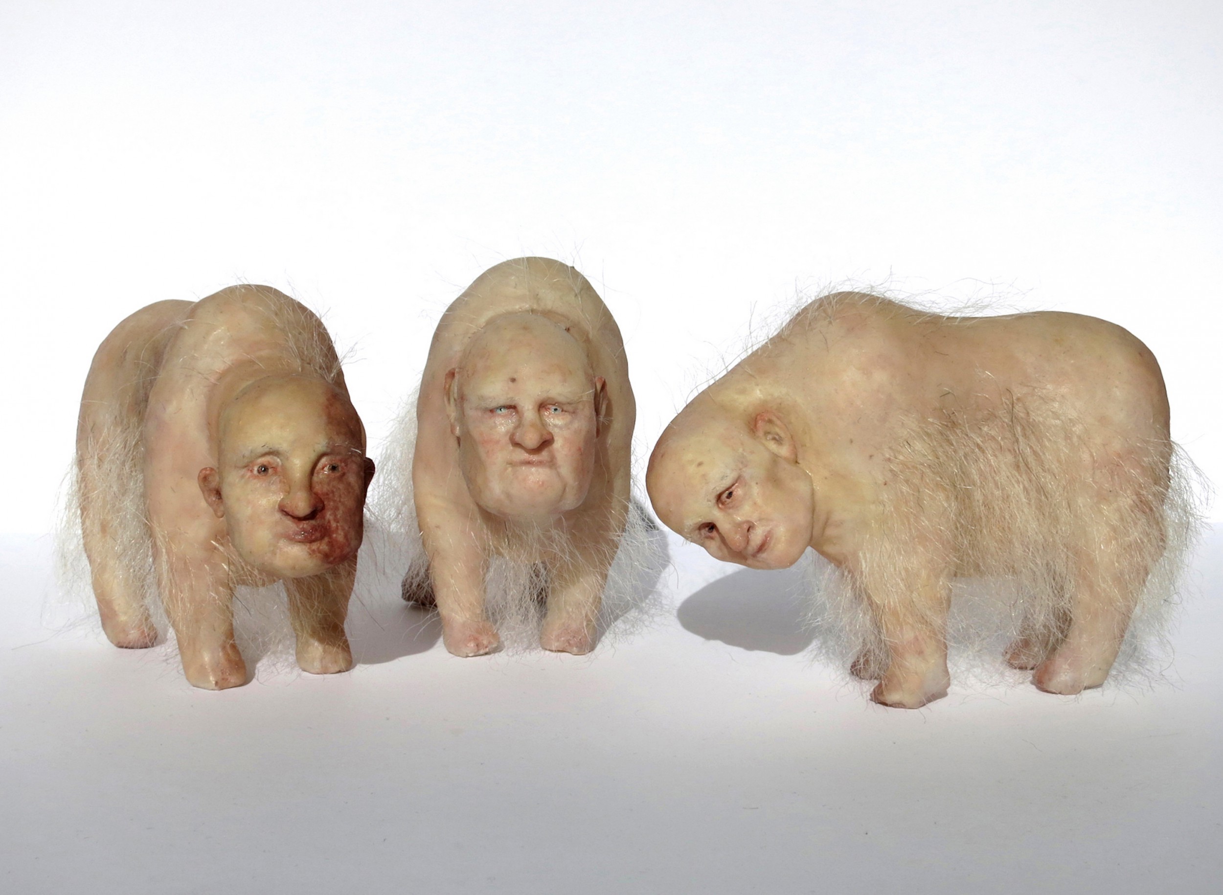 The process begin from the initial concept/drawing to sculpting in plastercine, moldmaking in rubber and casting in silicone. From there I create the finishing by airbrushing and hair punching the final details. These creatures take on a life of there own.