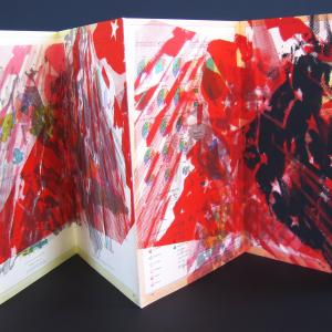 In the spring of 2006 I returned to Havana for six weeks, to find a continued battle of media between the US Interest Section and the Cuban Government. The US Interest Section had installed window sized LED signs across the 5th or 6th floor of the building in an effort to inform the Cuban peoples of current events as they traveled along the Malécon. The Malécon is a 6 km road bordering the city of Havana and the sea, a place for Cubans to gather, enjoy the sea breeze, the living room of the city. The Cuban government quickly raised 50 flagpoles each with a black flag and a single white star, effectively blocking the signage. What one views is a group of majestic black flags blowing in the breeze with a flickering red light behind them; the colors of the Communist party- the revolution. Division Politico is an 8 page accordion book made from a 1980's Cuban atlas with images of the flags silk-screened across the pages of the book.