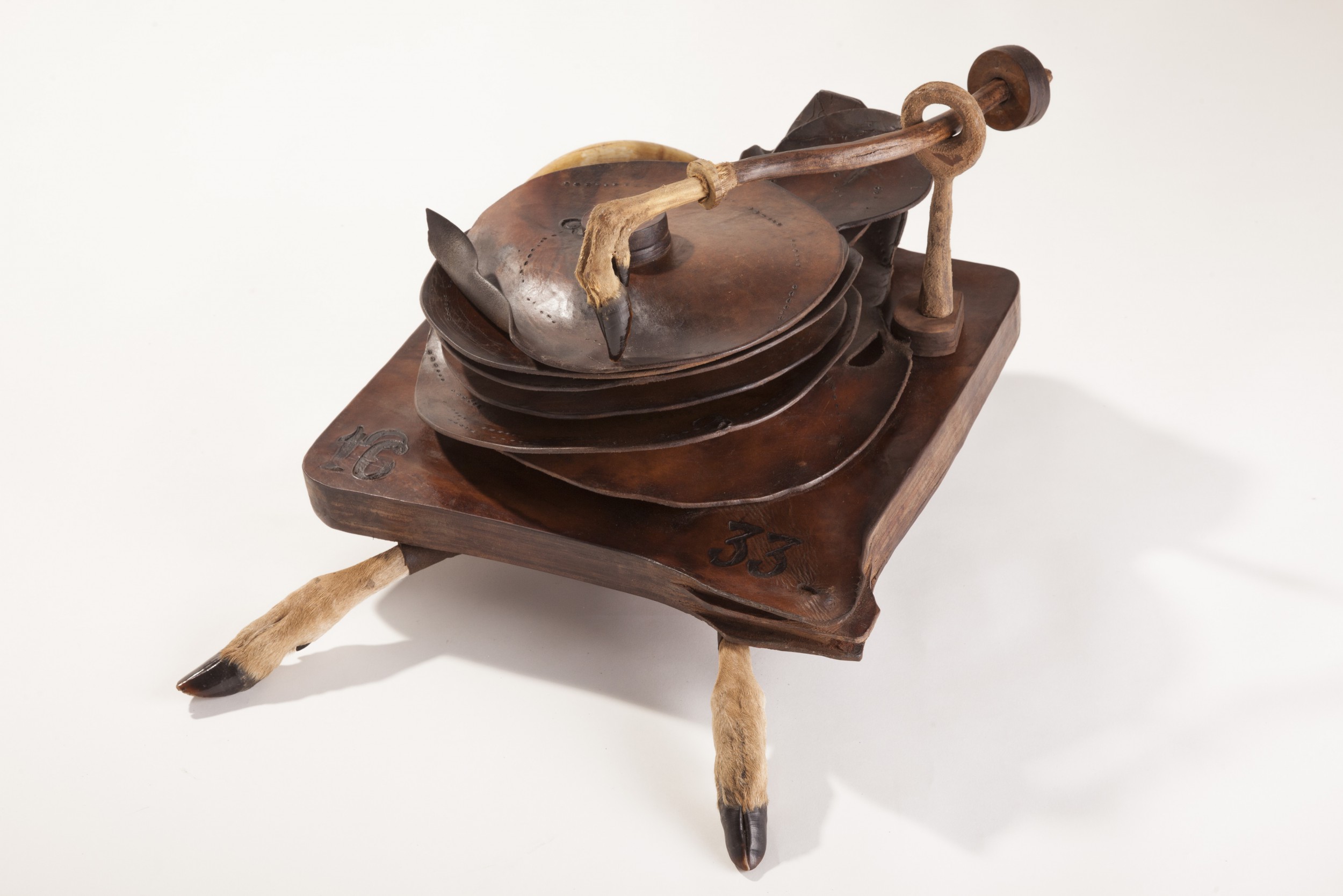 33/45 RPM is conceptual,surreal sculpture ,fully made of one piece of leather,