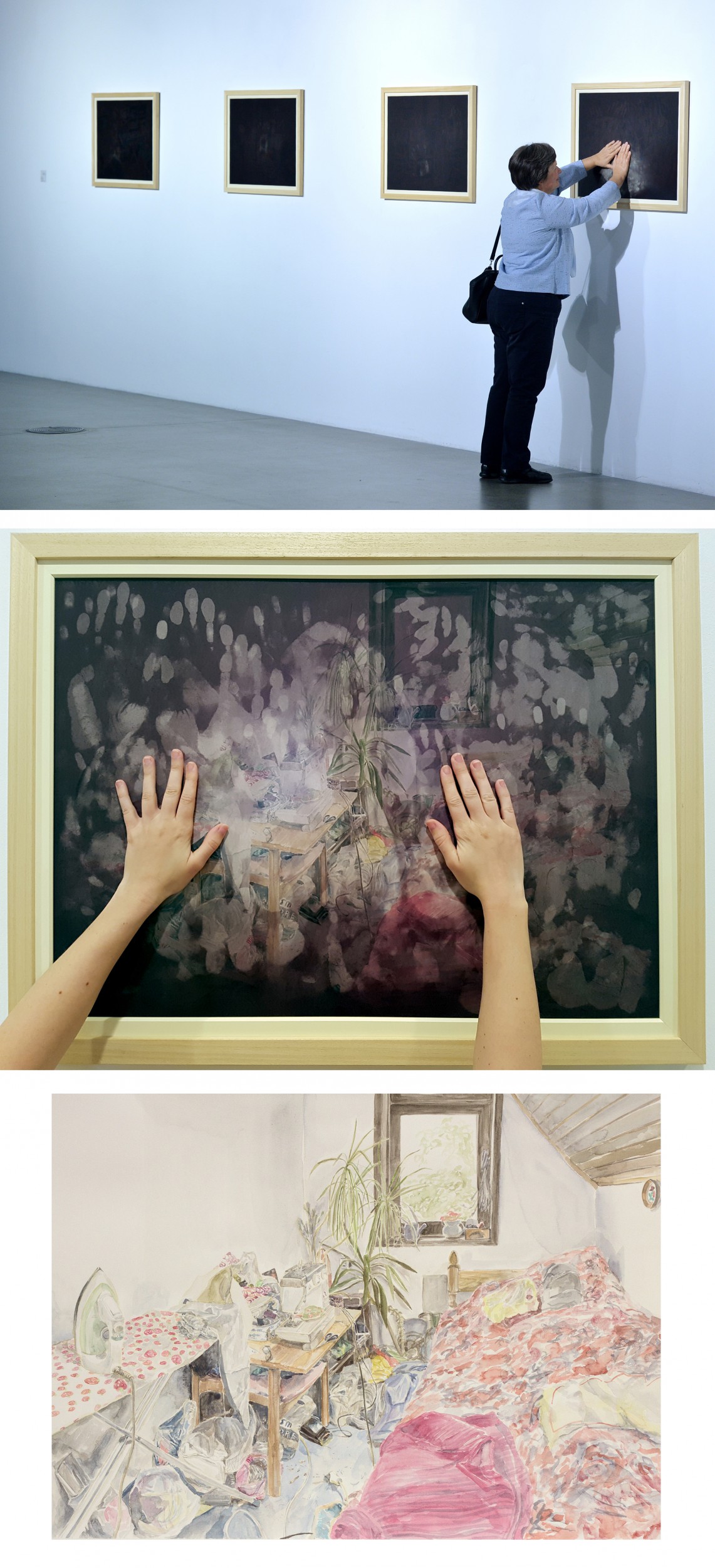 Cleaning and taking care of the purity of space is an invisible job. That is why in this work it is compared to the use of black, which at the same time has the qualities of a clean surface and the impurity of blackness. Black thermochromic colour becomes transparent. Transparency allows the mess to become visible. The question arises: by interfering with another person's intimacy, do we become impure, or aware of humanity?