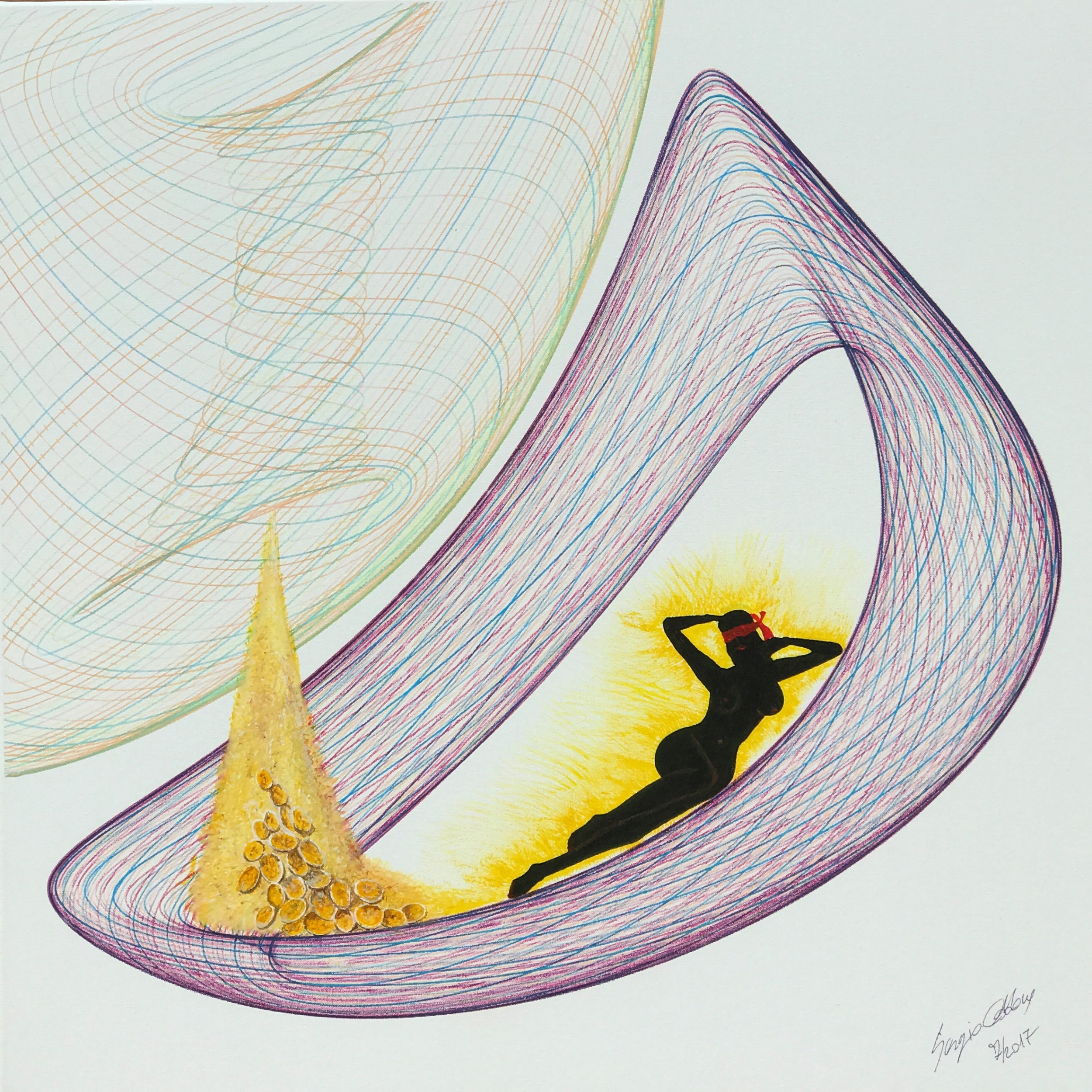 Mutatis mutandis in the dimension of Sergio Oddone, in his works, the origin of everything is represented by a complex of vortexes of lines that moving in a unique but indecipherable way give rise to existence.