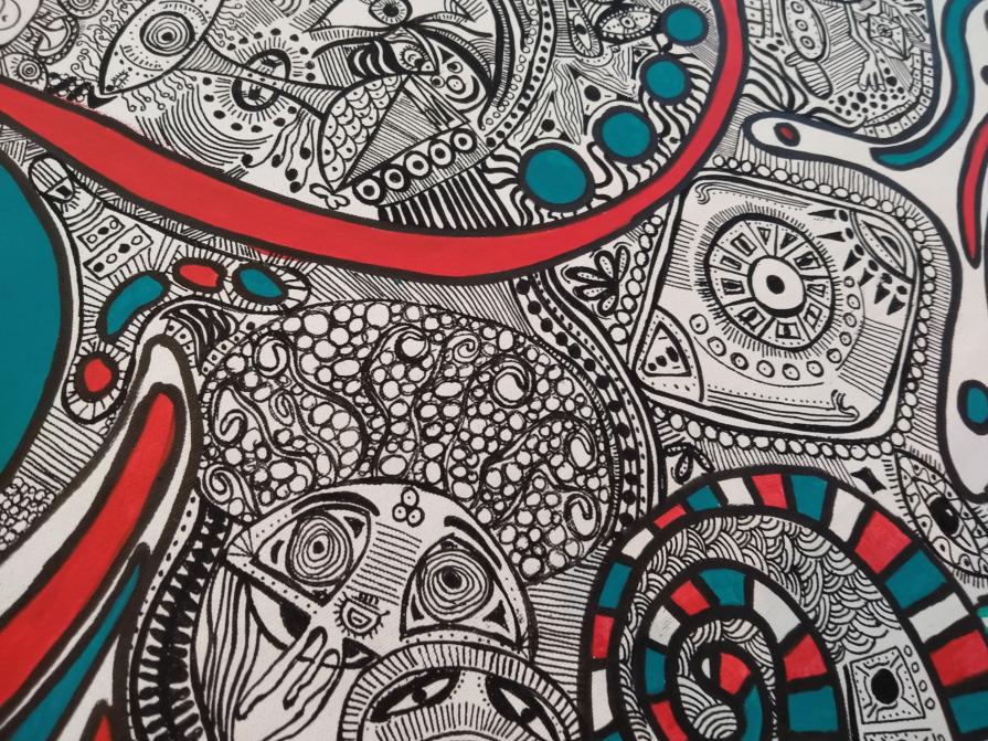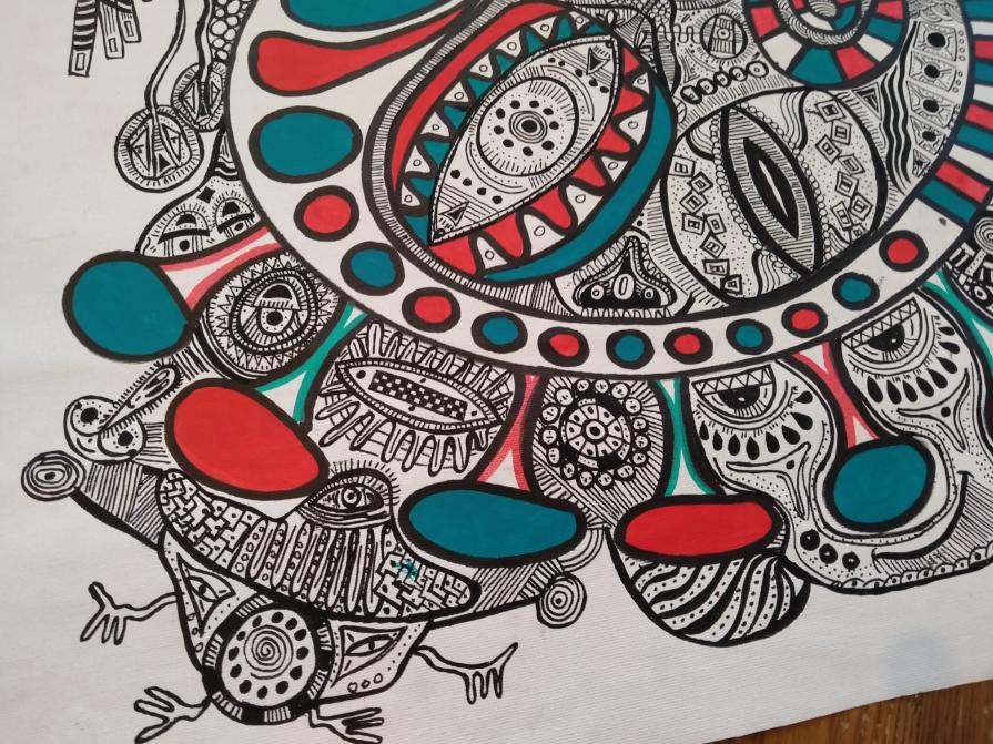 This pictorial phase of mine continues. I'm having so much fun drawing all these figures that come out of my hand as if they were always inside me. As always happens since I paint everything takes shape in the most natural, magical and divine way there is...! I am only the medium of the creative force that everything is. Recommendation for anyone wanting a classic frame.