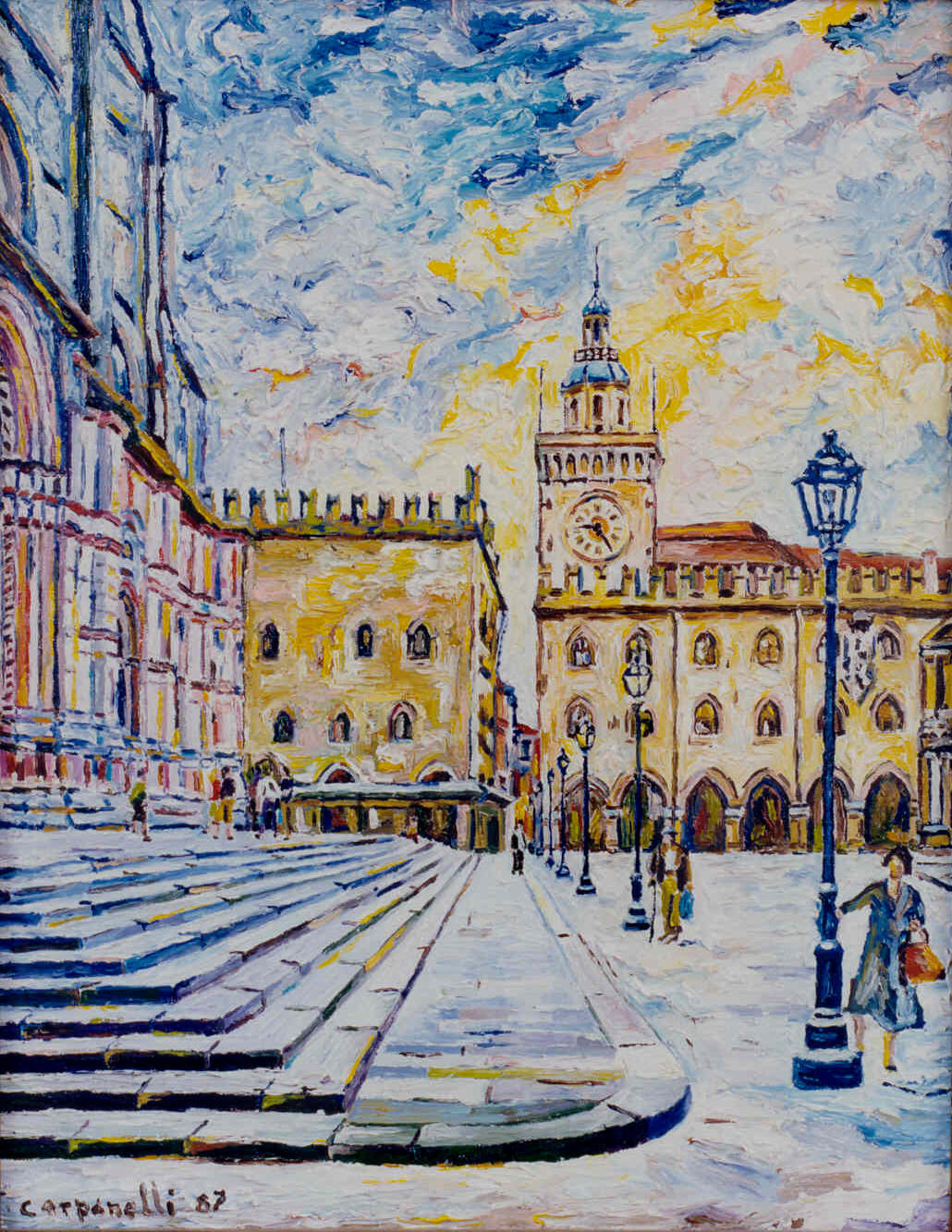 Bologna:Piazza Maggiore dal Pavaglione Painting, Architecture, Landscape, Oil, 37x47x1cm Canvas Oil bologna Added 15 years ago 5 I Like I don't like 3 Comments 172 Visits Share Facebook Twitter Google + Has been liked by 5 Tanya Bartolini Premium Artist - Milano, Italy Barbara Ghisi Premium Artist - Modena, Italy Enrico Ripamonti Artist - Brescia, Italy MAURIZIO FARINA Premium Artist - Novara, Italy Gianfranco Castelli Artist - Bologna, Italy Comments 3 15 years ago MAURIZIO FARINA Premium Artist MOLTO BELLA 15 years ago Giancarlo Caporali Artist Bellissima!!... mi hai fatto rivivere tanti ricordi piacevoli!!... come la Piazza nell'inverno del 1985 con un metro di neve, Vota la Voce, Beppe Maniglia, le passeggiate con la mia famiglia!!... Grazie mille. 15 years ago Teresa Palombini Artist Mi piace!! Say something You must login or Sign Up to write a comment Join