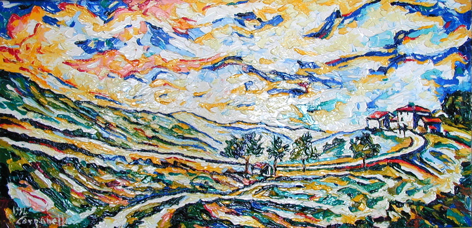 Pietracolora : casa dei monti Painting, Landscape, Oil, 100x50x2cm Canvas Oil paesaggio Added 14 years ago 9 I Like I don't like 4 Comments 162 Visits Share Facebook Twitter Google + Has been liked by 9 Tanya Bartolini Premium Artist - Milano, Italy Nero Levrini Premium Artist - Reggio nell'Emilia, Italy Maria Cristina Neviani Artist - Modena, Italy Rosa Lamberta Artist - Correggio, Italy MAURIZIO FARINA Premium Artist - Novara, Italy Vittoria Arena Artist - Milano, Italy Lee McDonald Artist - Plymouth, United Kingdom GIULIART Artist - Modena, Italy alessandro troso Artist - Roma, Italy Comments 4 14 years ago Maria Cristina Neviani Artist I profili di campi, viottoli e colline richiamano quelli dell'aria e delle nuvole, i colori rispondono in controcanto...in una gioiosa e lieve polifonia. Elegante come sempre. 14 years ago Antonio Esposito Artist EMOZIONANTE 14 years ago Lee McDonald Artist love it 14 years ago Teresa Palombini Artist Mi piace, è un dolce paesaggio. Say something You must login or Sign Up to write a comment Join