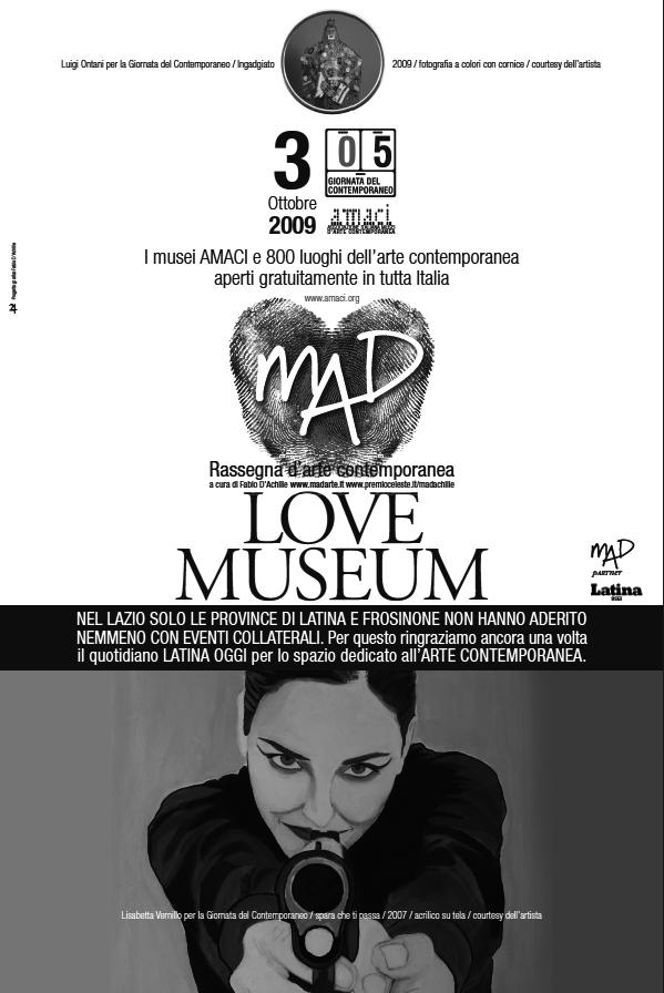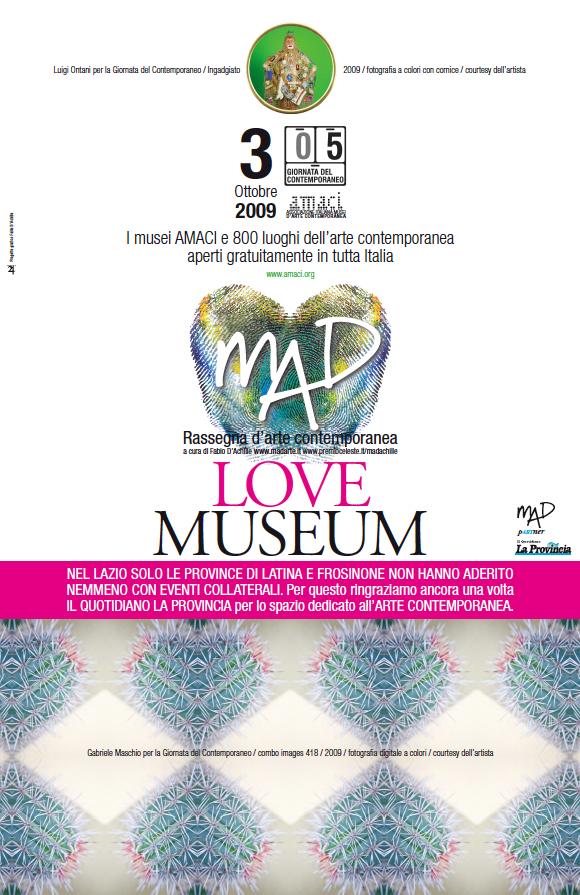 At the 5th Day of Contemporary Art organized by AMACI - as only in the territory of Latina and Frosinone were not promoted initiatives to support the Contemporary Art - with the cooperation of the newspapers of Latina and Frosinone, MAD has still room for event at least "on paper"... So the works of Gabriel Maschio, Gavino Crispo and Lisabetta Vernillo argued that of Luigi Ontani dedicated to Day of Contemporary Art.