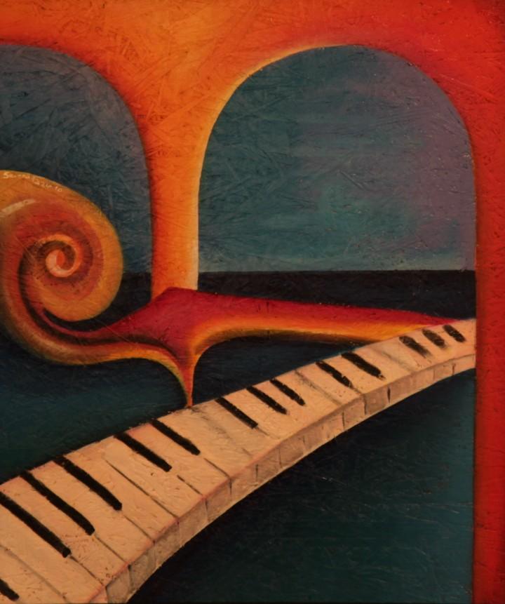 Incorporates exhibitions Space The Art Elsewhere Via de Rome 38 to Ferrara. Will resume its journey, undertaken with the Cultural Association Olympia Morata, through the senses and the involvement of creative artists who create the 5 senses and express themselves. This will be addressed and proposed the fifth sense, hearing, entering the exhibition during the period when the whole town is "invaded by the Music" with dozens of artists from all over the world, the International Buskers Festival. So artistically inherent in the visual arts curator Francesca Mariotti has created a small but esaudiente set of pictorial and graphic expressions of the Sound of Music and made their principal object. "Musica!" is a small example of the importance of attention to sound, harmony and excitement that this perception can be received. Painters and sculptors will show the strong relationship between color and sound very well as many great artists of the past have said. First of all the great Kandijnski, in his "Concerning the Spiritual in Art", the continuing discovery of art de'l'opera 'stated: "Color is the keyboard, the eye is the hammer, the soul is a piano with many strings.. "