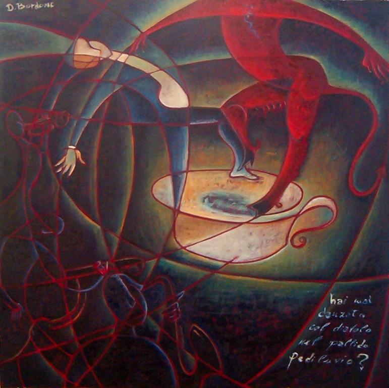 Linee e vortici, movimenti continui. Un'arte pittorica sospesa fra vibrazione e immobilità. Una coinvolgente avventura ci inghiotte felicemente tra linee sinuose, movimenti armonici e immagini destrutturate in grado di rendere percettibile tutto il fascino dell’opera di Daniele Bordone.