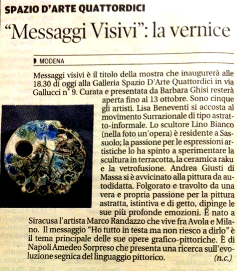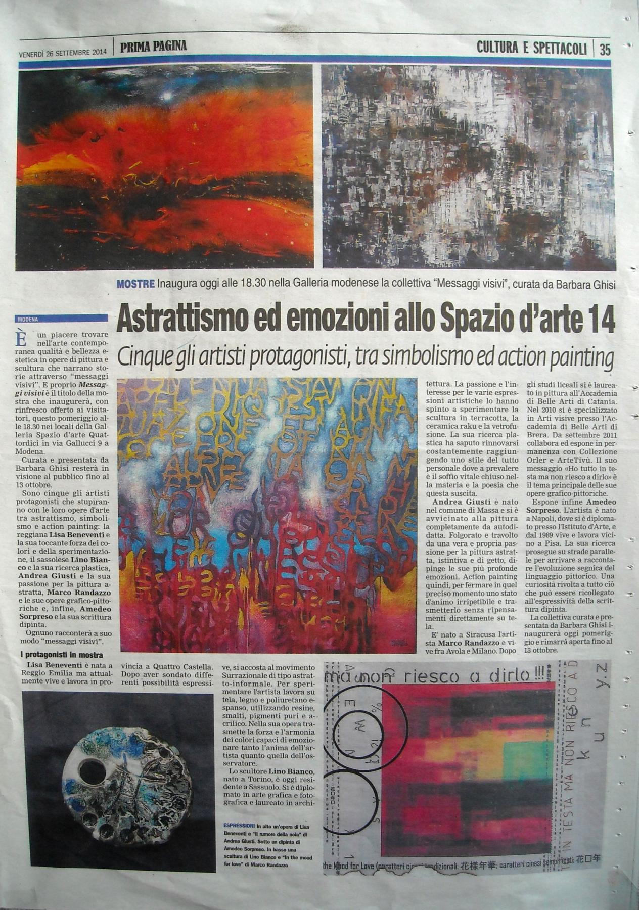 Exhibitions, Italy, Modena, 26 September 2014 Added 11 years ago 8 I Like I don't like 14 Comments 241 Visits Share Facebook Twitter Google + Say something Comments 14 11 years ago Stefania Rinaldi Artist in bocca al lupo! 11 years ago cristina carcavecchia Artist congratulazioni 11 years ago benny Artist complimenti 11 years ago Maristella Angeli Artist, Painter Complimenti! 11 years ago Mauro Pellizzi Artist complimenti! 11 years ago Anna Maria Cometa Artist Bravissimissima. 11 years ago Francesco De Iure Artist Complimenti Barbara sei ripartita alla grande. 11 years ago Maria Cristina Neviani Artist Opere splendide...un augurio a tutti gli artisti e alla curatrice! 11 years ago Cat Photographer Auguri a tutti ! 11 years ago Silvano Debernardi Artist Accidenti Barbara quante iniziative! Complimenti! view all 14 comments Say something You must login or Sign Up to write a comment Join