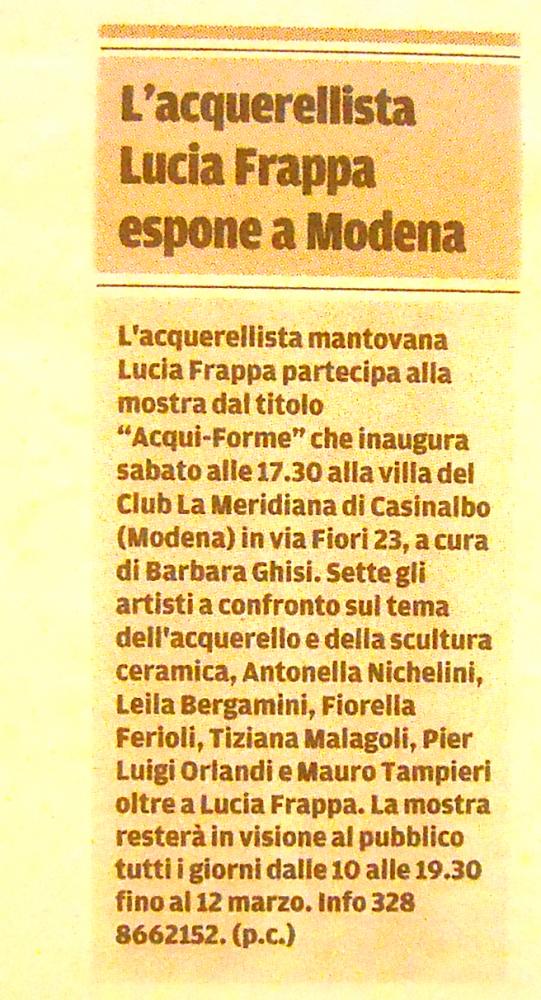 Exhibitions, Italy, Modena, 21 February 2015 Added 10 years ago 6 I Like I don't like 13 Comments 164 Visits Share Facebook Twitter Google + Say something Comments 13 10 years ago Waldemar Dabrowski Artist Congratulations...! 10 years ago Linda Aurica Tecleanu Artist Complimenti,bella mostra 10 years ago Maria Cristina Neviani Artist Una mostra connotata da leggerezza ed eleganza...complimenti a tutti! 10 years ago Cat Photographer Compliments ! 10 years ago Francesco De Iure Artist Complimenti! 10 years ago Lino Bianco Artist Congratulazioni e complimenti! A presto. Lino 10 years ago Emiliano Gambardella Artist complimenti 10 years ago Maristella Angeli Artist, Painter Complimenti! 10 years ago cristina carcavecchia Artist congratulazioni 10 years ago Teresa Palombini Artist Auguri!! view all 13 comments Say something You must login or Sign Up to write a comment Join