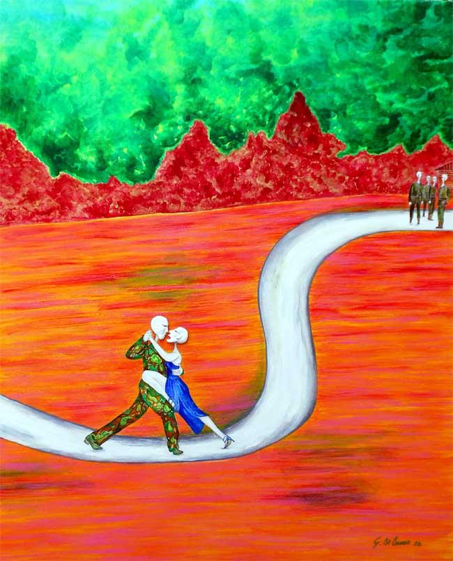 The new collection of paintings by the artist Giorgio De Cesario along an interesting route between news events as advertised in the media in recent months. Many "designers" of the past had shown with their images the most striking events of their contemporaneity, especially at a time in history when the lack of the most basic means of communication left plenty of room for creativity