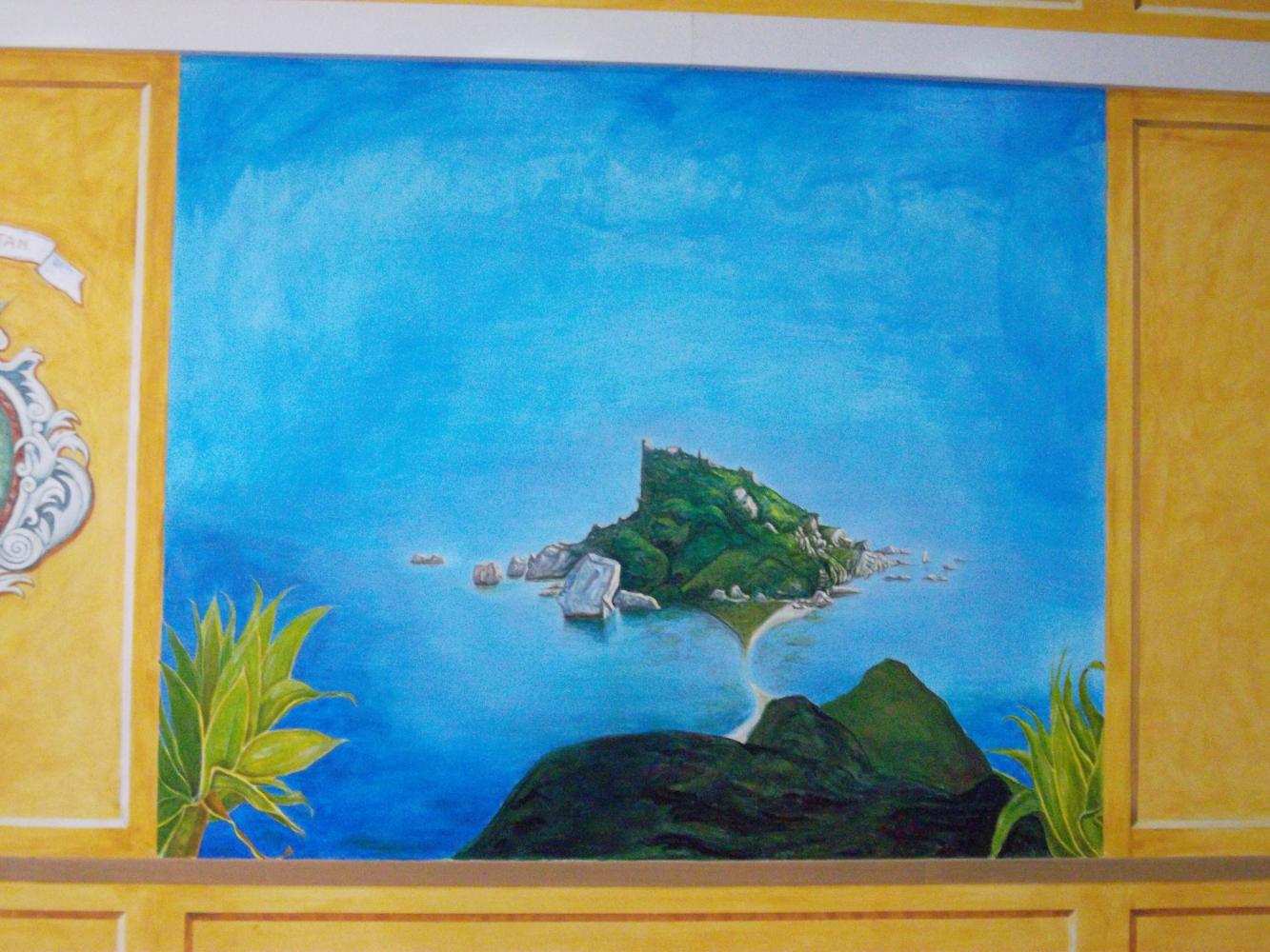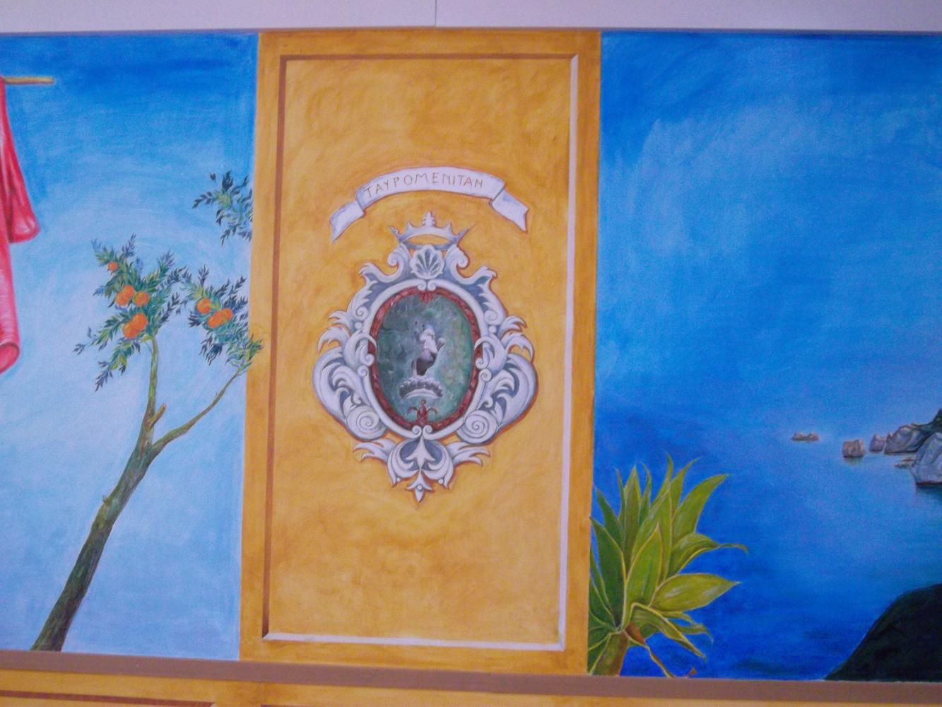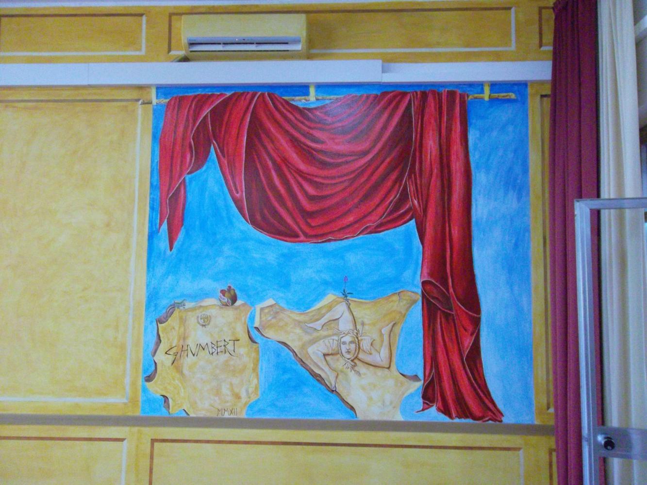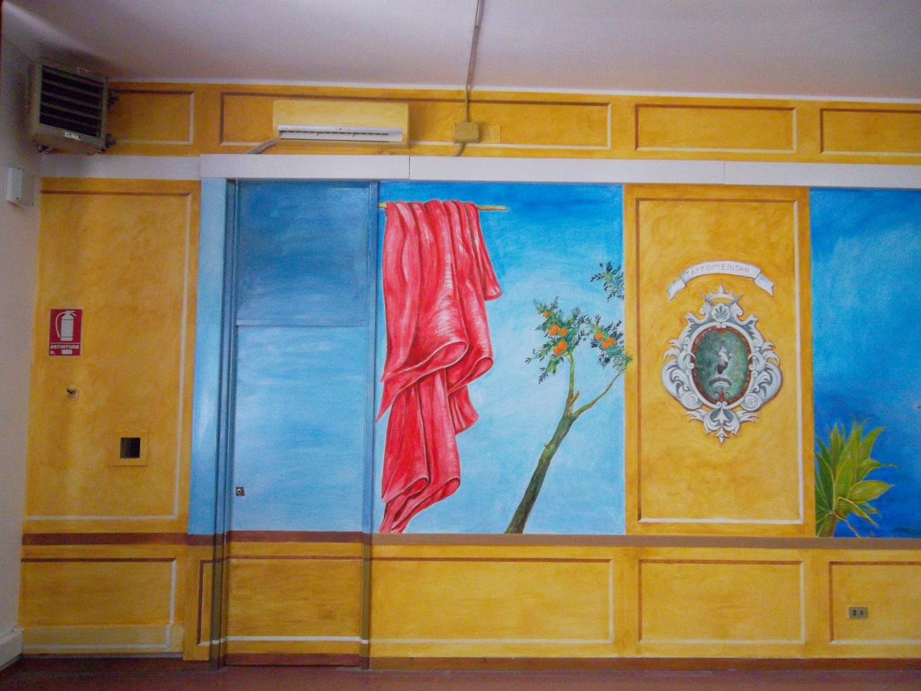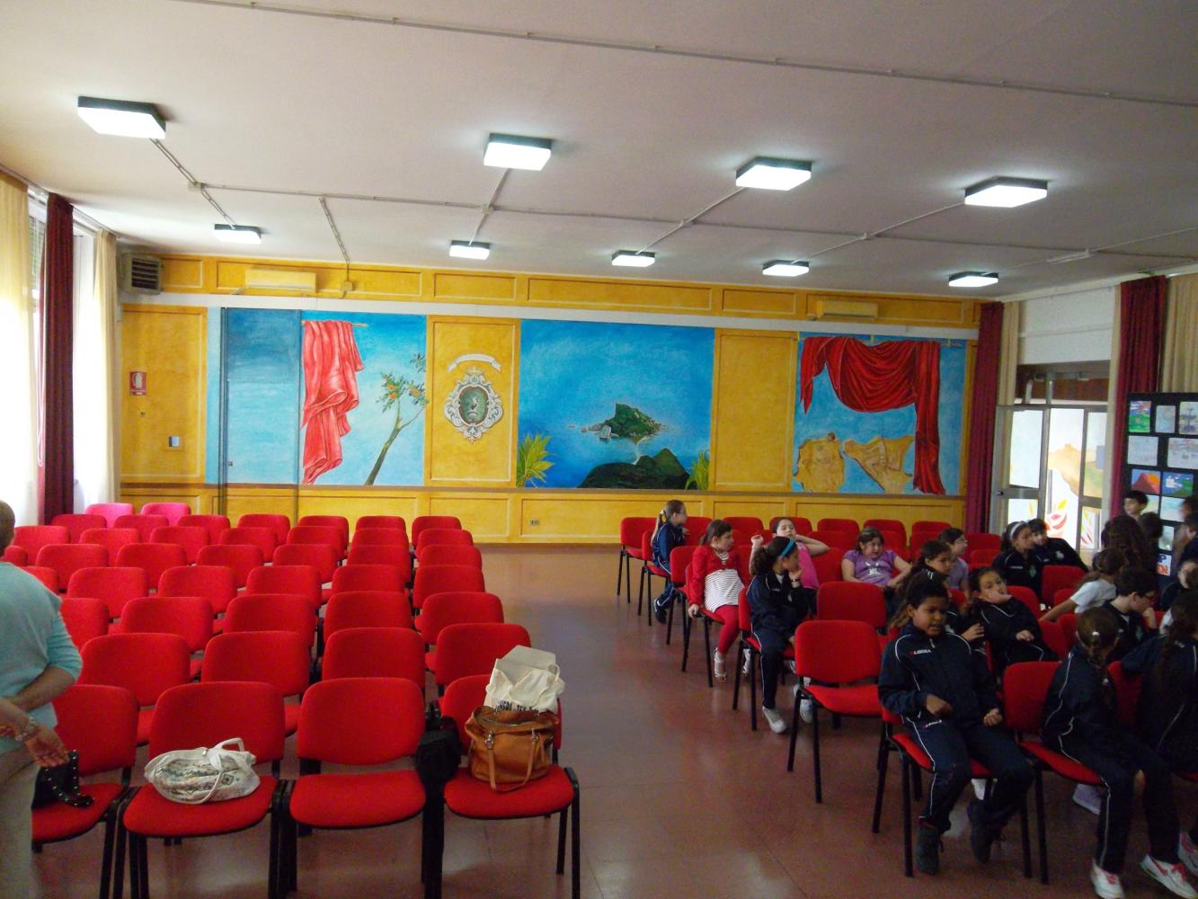 GHUMBERT gives price to children for the Exibition organice by Club UNESCO of Taormina Valli d'Alcantara e d'Agrò in the "Aula Magna" of the scholl where GHUMBERT di CATTOLICA, as President of the Association GAT Centaurea, has realised a large murales of Isola Bella of Taormina 14 mt large for 4 mt high