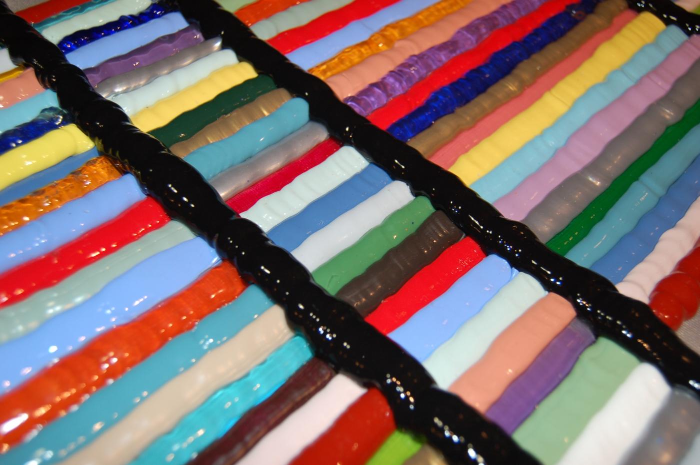The work is a riot of colors and materials, an encounter of lights and colors that become melody.
