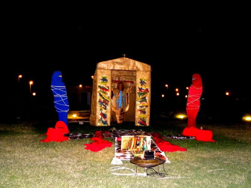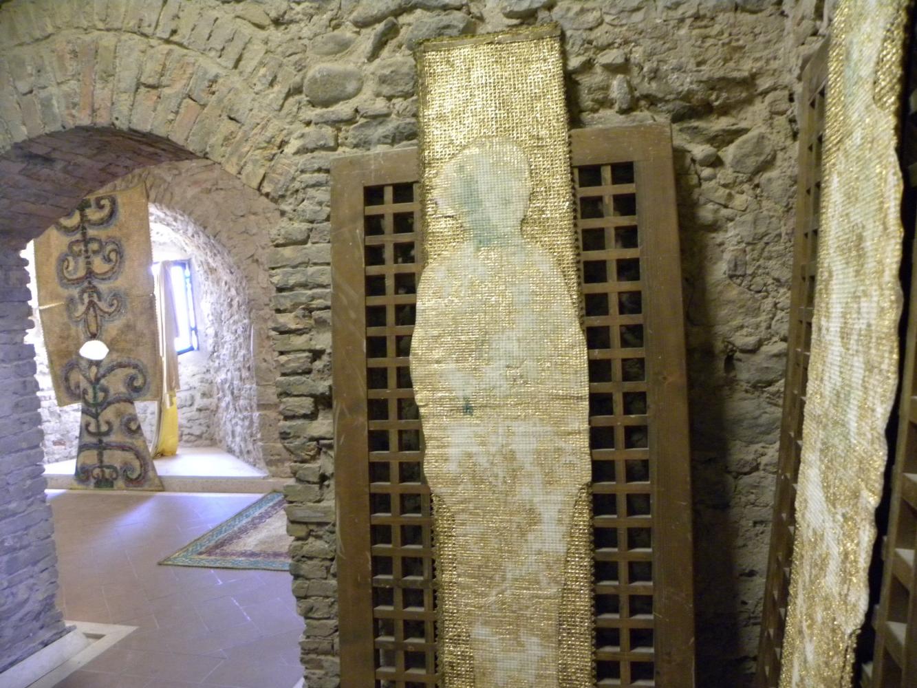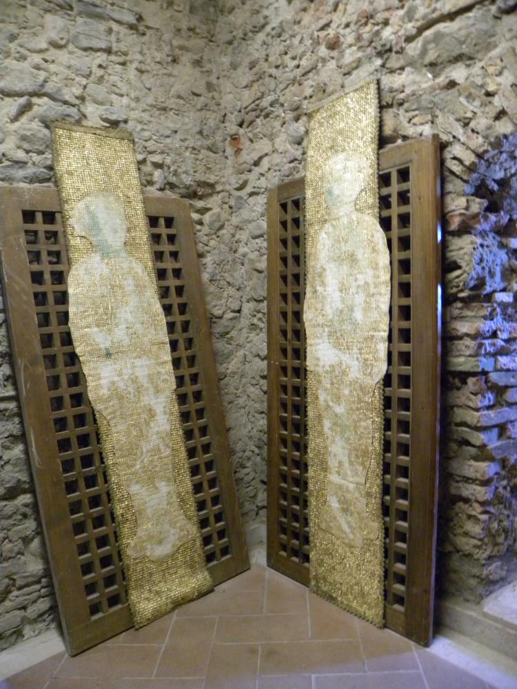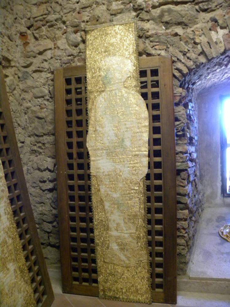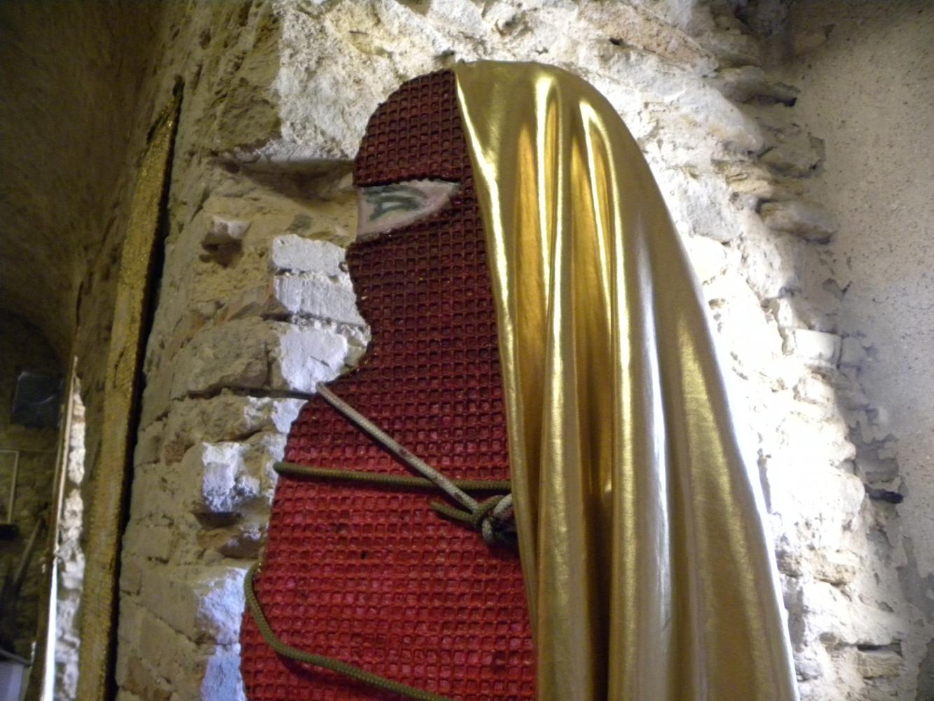 To merge these two worlds gold for a totally different world, it seems, Rosa Didonna using an anti-magnetic system in which the two opposites attract and repel each other, an evocation of white fabric that defines the boundary of the space stones surrounded by stoning and violence; while the Western woman wants to be a still-image of the negative message in a positive-negative-positive uniting them in a single emblem imaginary between East and West.