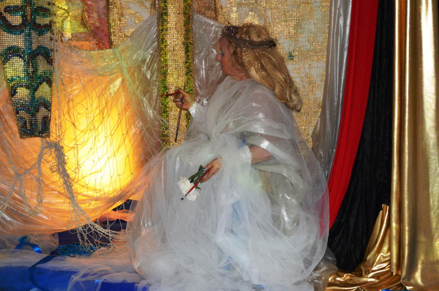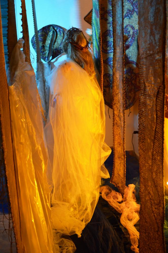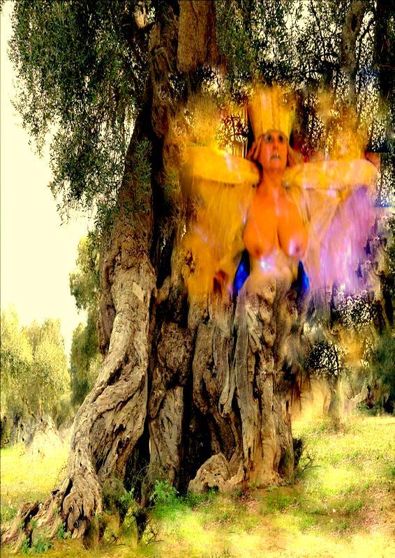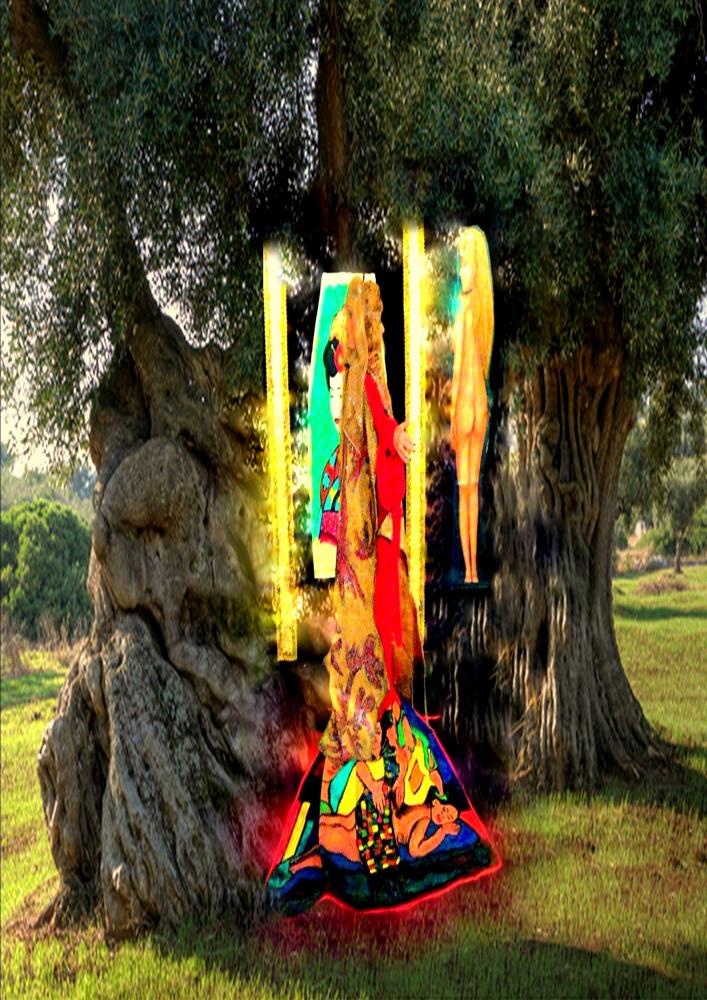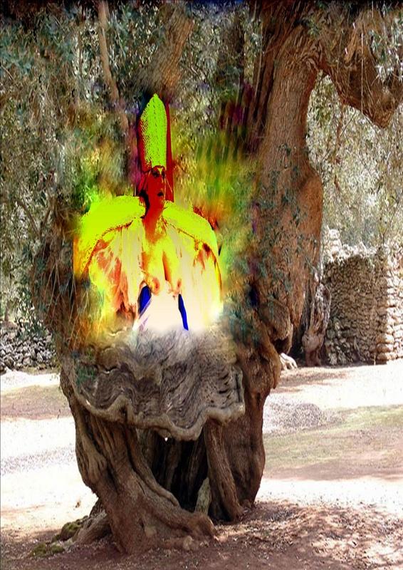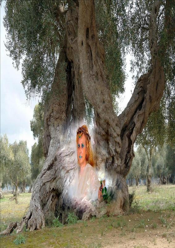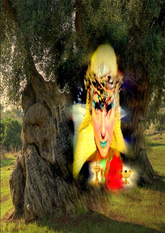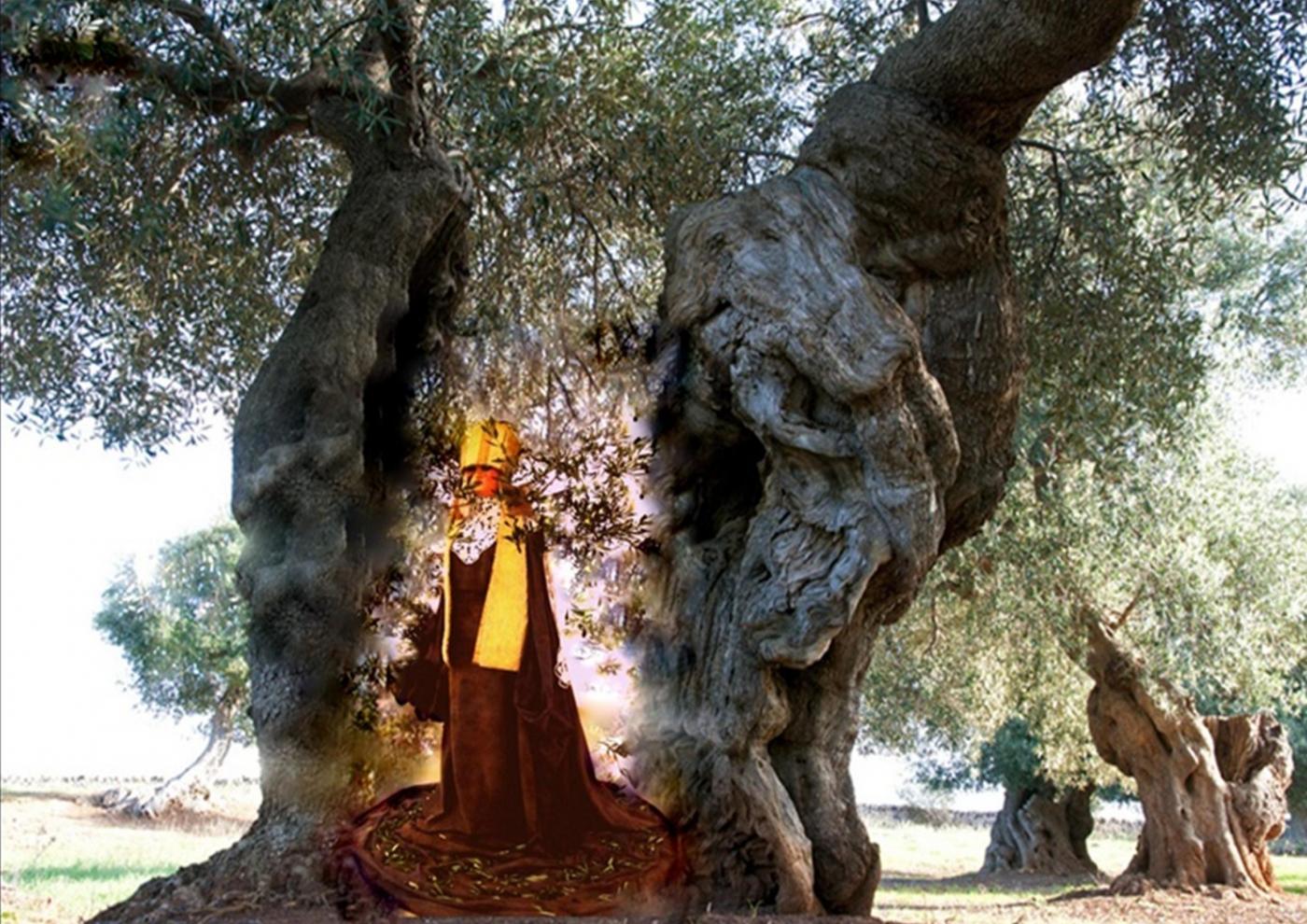 La mostra è dedicata a sua santità albero d’Ulivo per cui l’artista Rosy Papessa interpetra la sua performance "Potentia divina gratia In Urlo d’Ulivo”