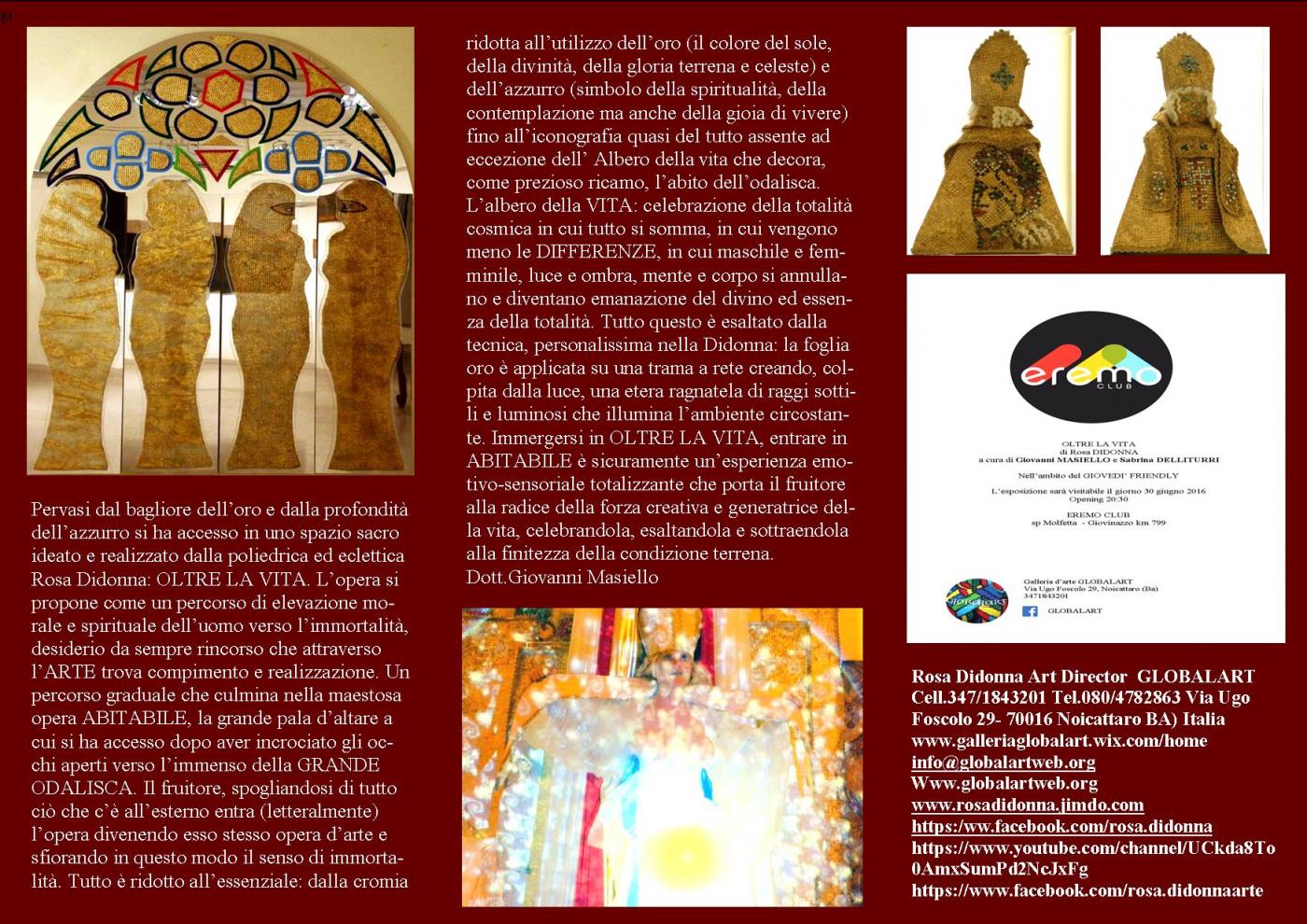 Per info Rosa Didonna Art Director GLOBALART Cell.347/1843201 - Tel.080/4782863 Via Ugo Foscolo 29 - 70016 Noicattaro BA) Italia www.galleriaglobalart.wix.com/home info@globalartweb.org Www.globalartweb.org www.rosadidonna.jimdo.com https:/ww.facebook.com/rosa.didonna /www.youtube.com/https://www.facebook.com/rosa.didonnaarte