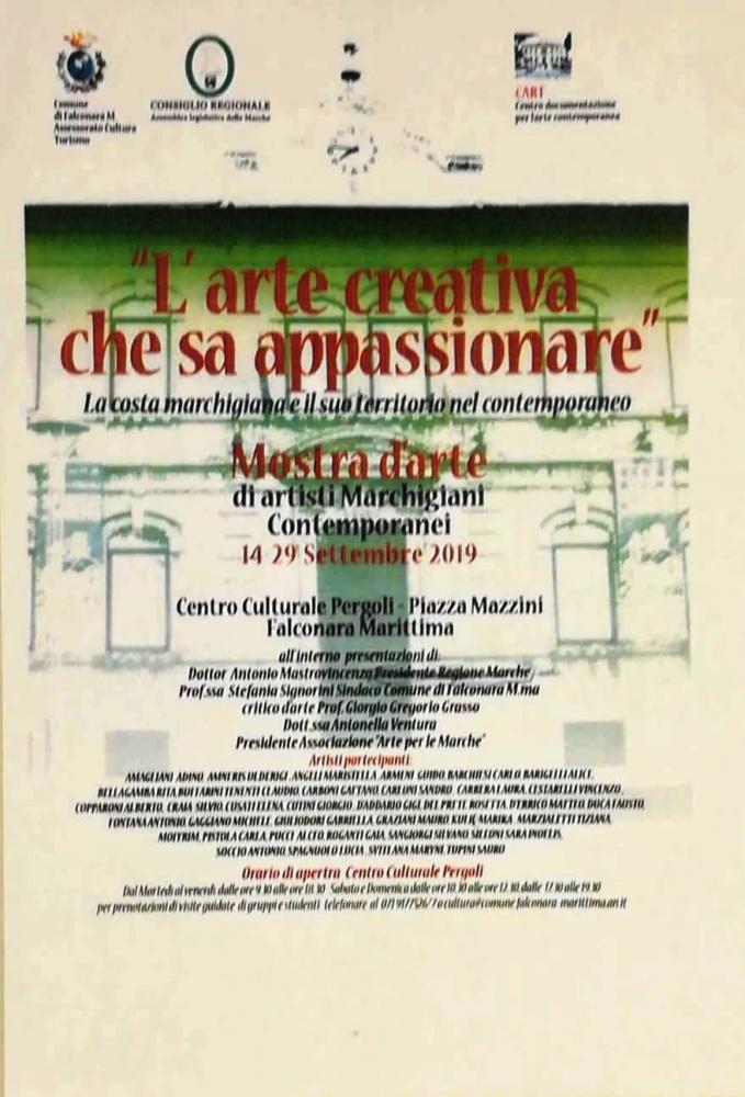 For the second year the curators Sandro Carloni and Alberto Copparoni, with the patronage of the Municipality of Falconara Department of Culture and the Regional Council of the Marche, have succeeded in carrying out the exhibition, with the aim of enhancing the contemporary artistic expression and making it more usable.