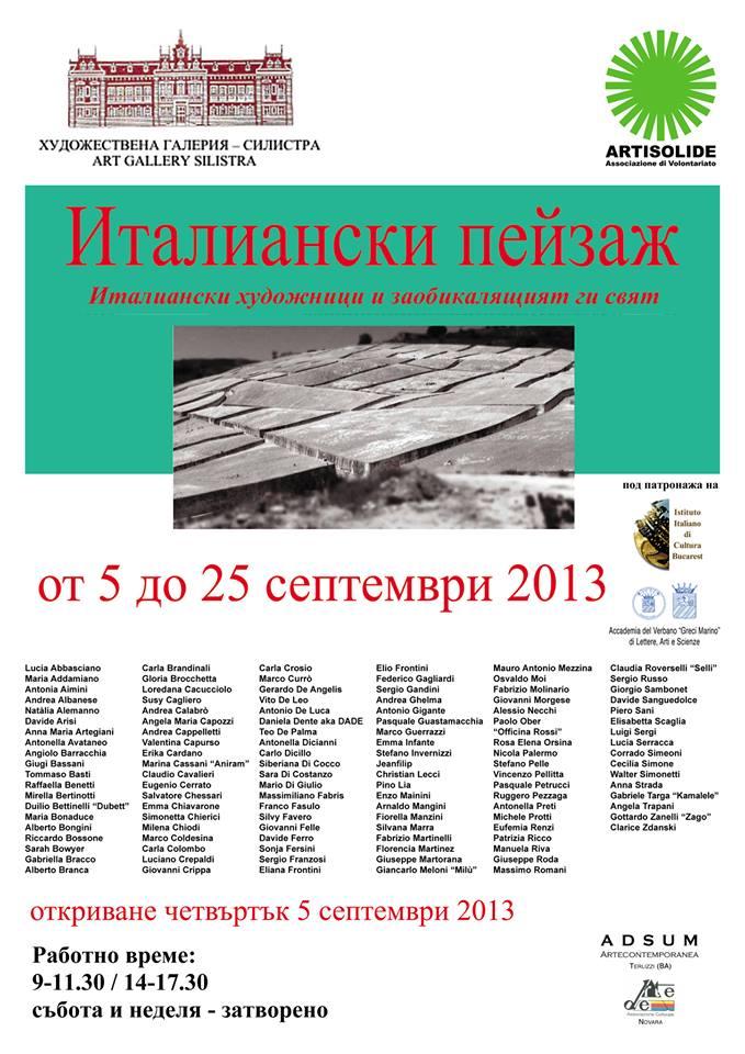 Exhibitions, Bulgaria, Obshtina Silistra, Silistra, 05 September 2013 More than a hundred Italian artists on show at Galeria de Arta to Silistra (Bulgaria) - Italian Landscape (Peisaj Italian) 5-25 September 2013 Added 12 years ago 0 I Like I don't like 1 Comment 87 Visits Share Facebook Twitter Google + Comments 1 12 years ago Teresa Palombini Artist Tanti auguri! Say something You must login or Sign Up to write a comment Join