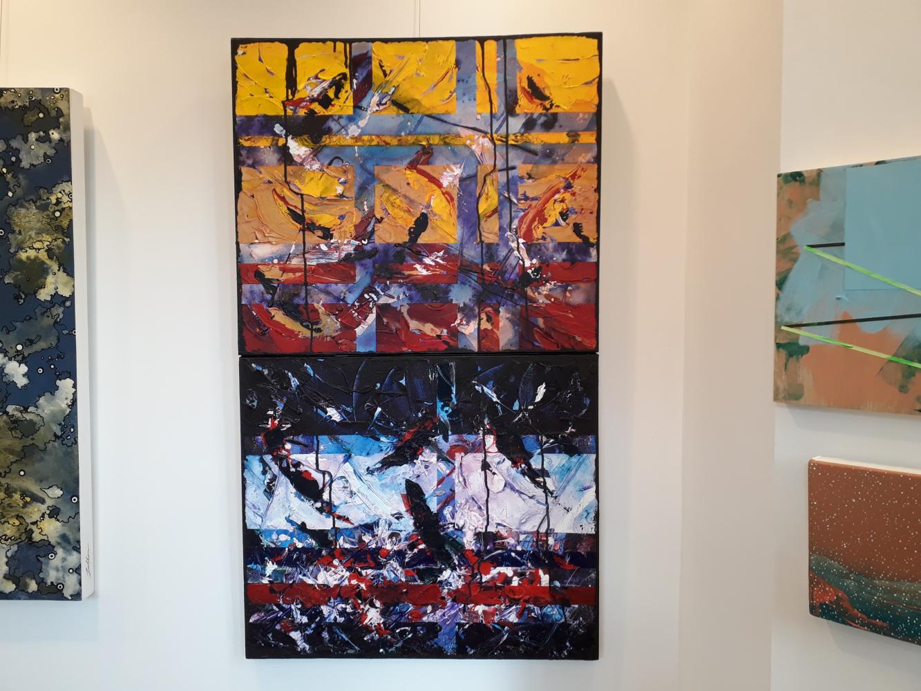 My painting "The City - night and day" (Acrylic; Copyright Paul Brotherton) has been installed in the 'Anniversary' exhibition at Saul Hay Fine Art, Contemporary Art Gallery, Manchester. This show features and celebrates the 35 Artists who have exhibited during the 1st exciting year since the opening of the gallery; 30th September until 12th November 2017 - www.saulhayfineart.co.uk (Exhibition installation photos also at Twitter - Paul Brotherton @paul_art_design )