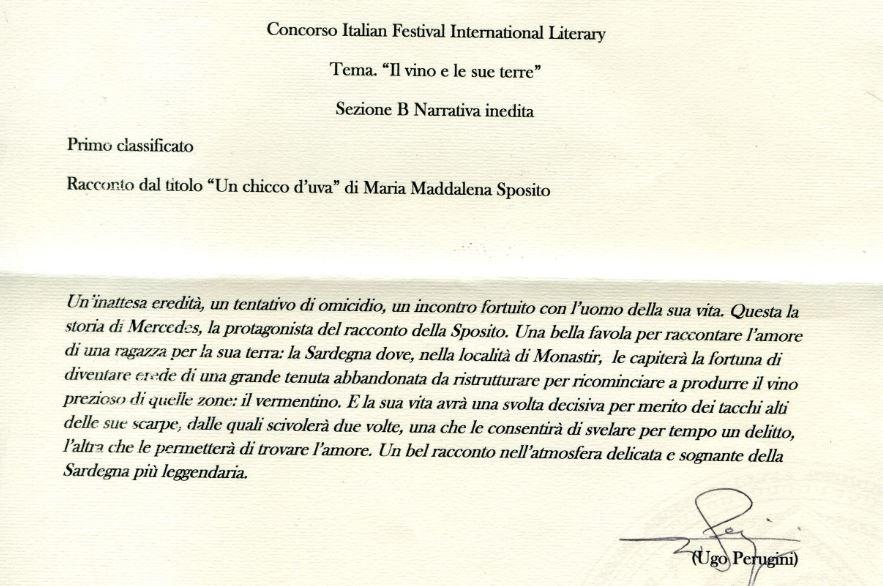 1st Classified “Maria Maddalena Sposito” For the story “Un Chicco d’uva”