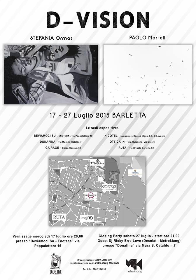 D-VISION is an original synthesis between art photographic and pictorial art. The exhibition is an emblematic and intense dialogue between the paintings of Stephen Ormas and photographs by Paolo Martelli.