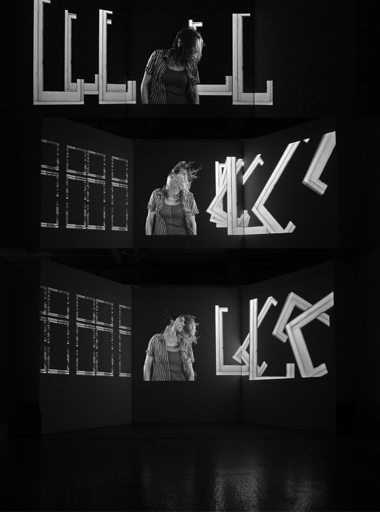 Three-screen video installation based on relation between body and space. A combination of architecture and typography, where we travel through our thoughts and different personalities inside one identity.
