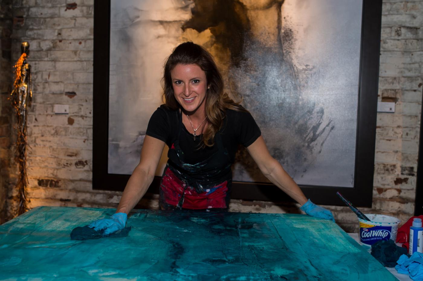 Throughout Sarah’s biology and fitness careers, she always kept her creative skills alive through sketching and painting. This passion grew strong a few years ago and Sarah’s true calling, abstract painting, now plays a prominent and fixed role in her life. Sarah has become an established and successful artist, gaining recognition in solo shows, group shows, artist events, as well as having her art featured in the Globe & Mail, and on the television show CityLine. She spends much of her time now creating and experimenting in her studio with various materials and techniques.
