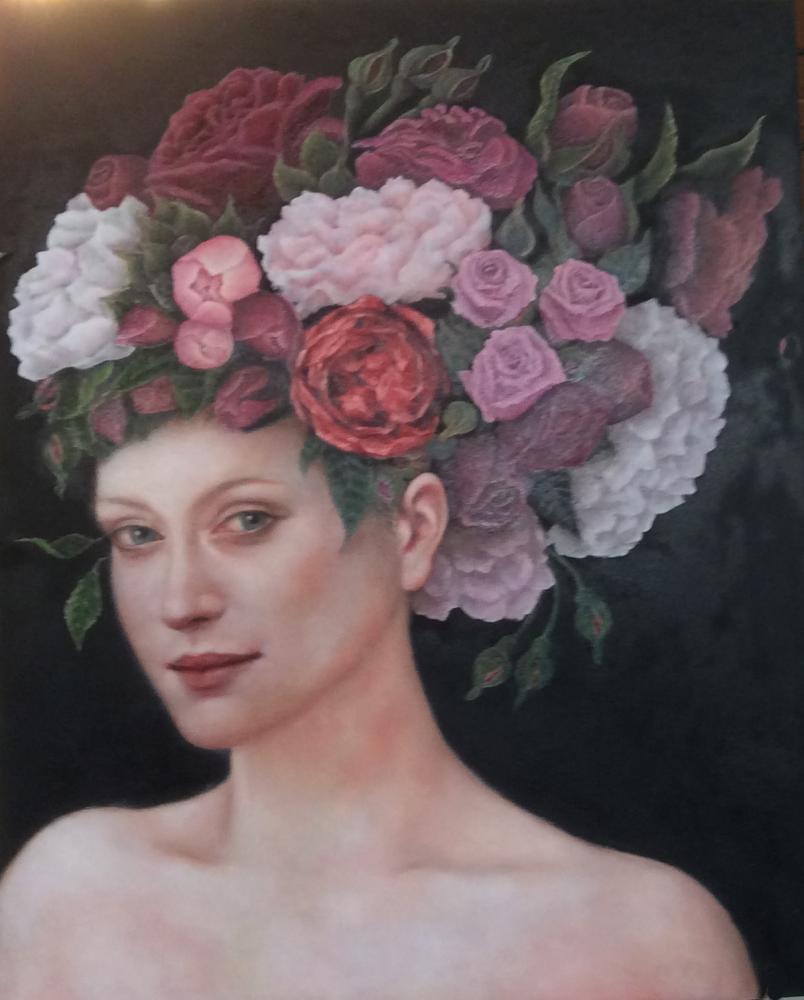 In Foto: REGINA DI FIORI, olio su tela, 40 x 50 cm, by Sara Calcagno