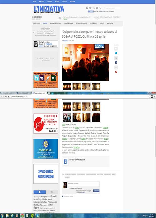 04 April 2014 mostra collettiva presso il lounge bar sobar-pozzuoli-E' partita il giorno 3 aprile la mostra,con l'allestimento della sala.Il giorno 6 si è avuta l'inaugurazione con un ottima affluenza di visitatori Inserito 11 anni fa 0 Mi piace Non piace più 0 Commenti 110 Visite Condividi Facebook Twitter Google + Commenti 0 Inserisci commento E' necessario effettuare il login o iscriversi per inserire il commento Login