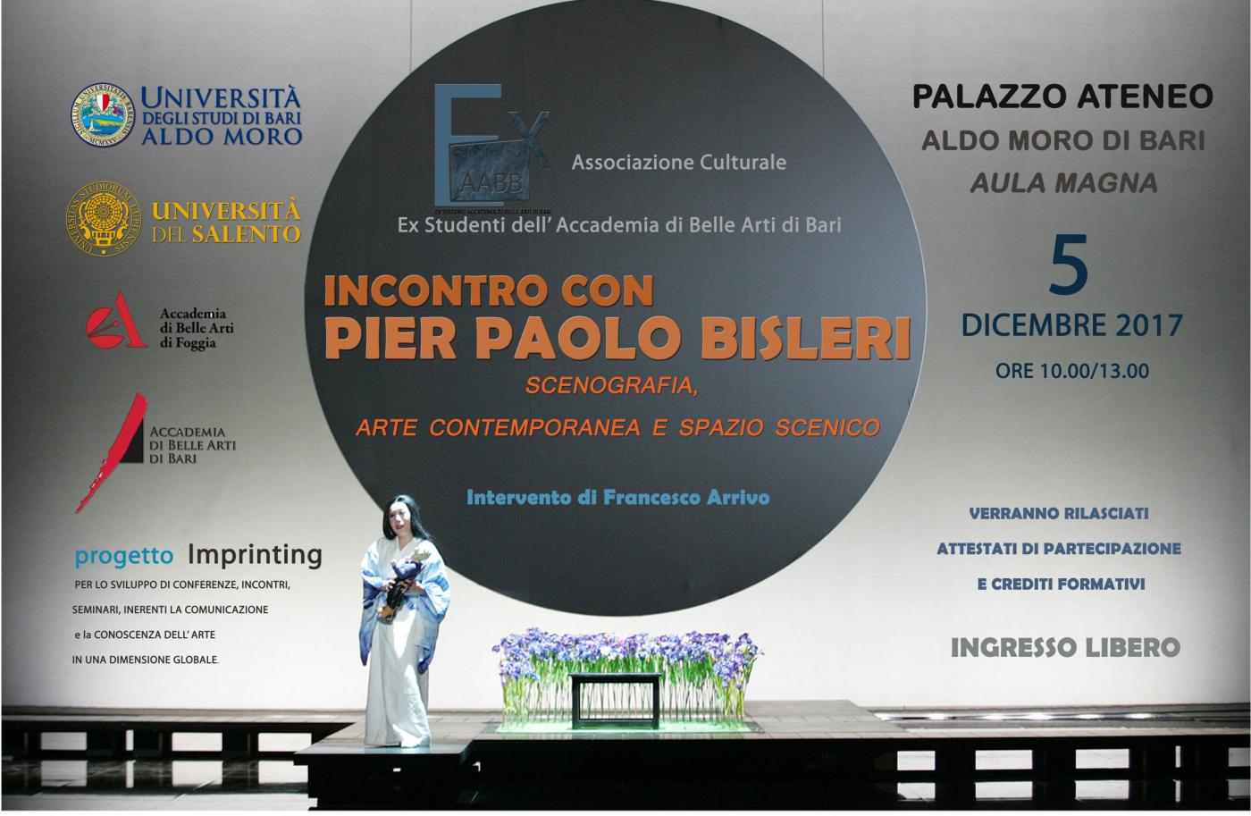 Scenografia, arte contemporanea e spazio scenico: tutto questo in un’unica lezione tenuta nell’Aula Magna dell’Ateneo degli studi di Bari dallo scenografo di fama internazionale Pier Paolo Bisleri. Diplomato in scenografia e costume presso l'Accademia delle Belle Arti di Firenze il suo lavoro si è spinto sempre più verso la ricerca di uno 'spazio emotivo' che gli permetta maggiormente di isolare e approfondire i personaggi, le situazioni drammatiche e la musica in tutta la pienezza del loro significato. Il suo lavoro gli ha permesso di collaborare con illustri registi nei più celebri teatri d’Italia e non solo. L’incontro organizzato dall’associazione “Ex studenti Accademia belle arti di Bari” ha catturato l’attenzione di un gran numero di studenti ma anche di molti docenti. “Dal settembre del ’75 ad oggi non sono più uscito dal teatro”, cosi Bisleri inizia a parlare alla platea. Rimembra le esperienze della sua lunga carriera artistica, scorre mentalmente l’imprinting della sua vita fino alla proiezione di alcune delle sue produzioni. A presentarlo all’inizio della conferenza è stato il Prof. Arrivo anche lui scenografo e professore in numerose Accademie d’Italia. “La scenografia non è altro che un linguaggio straordinario. La scrittura di scena è un altro racconto, differente dal testo d’origine”… Bisleri questo lo sa bene poiché negli anni ha avuto modo di vedere il palcoscenico non solo dinnanzi ma anche dietro le quinte e partendo dai testi delle opere da rappresentare ha donato loro una nuova storia, un diverso input, insomma nuove parole. Una lezione imperdibile dove l’arte contemporanea si presta alla creazione di nuovi scenari per noti drammi del teatro classico. Bisleri fa questo anche col dramma shakespeariano “Romeo e Giulietta”. I due amanti sono due comuni rom ed è la strada ad essere portata in teatro tramite la scenografia minuziosamente studiata. È cosi che Romeo e Giulietta si incarnano in personaggi reali. Bisleri dà loro un nuovo spazio, innovativo ed alternativo come quello di un campo rom. Studia minuziosamente i dettagli, i costumi, asfalta la scena. Shakespeare non muore nel tempo, le grandi opere sono immortali e per questo possono essere rinnovate dall’interno in una chiave differente. Bisleri da sempre si è sempre fatto promotore di un teatro nuovo ed innovativo, aderendo al “teatro della poesia”, una fase della ricerca artistica che sviluppa le esperienze maturate nel tempo. Come direttore degli allestimenti scenici ha partecipato ad oltre duecento spettacoli tra prosa e lirica e nelle aule dell’Ateneo ha irradiato il suo modo di fare teatro e quindi di fare arte mentre sul proiettore non cessavano di scorrere le migliori scenografie di opere illustri che hanno fatto il giro nei teatri del mondo! Se la prosa lascia largo spazio all’innovazione e all’avanguardia non da meno è la lirica… Bisleri ha illustrato la scenografia studiata per l’opera “Iris”, esempio di come anche nella lirica ci possa essere inventiva. Una mattinata all’insegna dell’arte e dopo un breve dibattito finale l’incontro si è concluso con lunghe ovazioni. L’associazione “Ex studenti Accademia belle arti di Bari” ringrazia quanti sono stati presenti al convegno.
