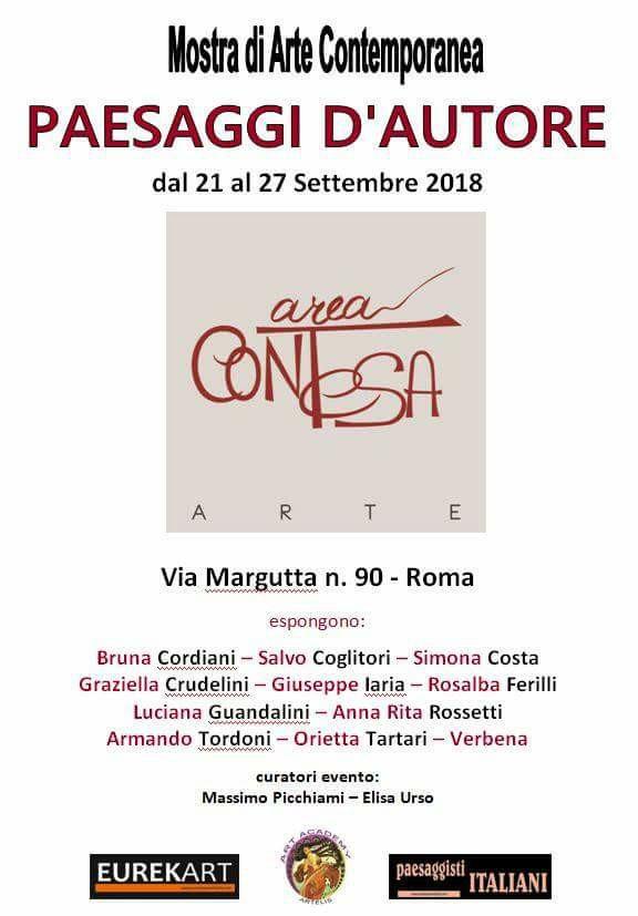 Nuovo appuntamento espositivo per il gruppo sei Paesaggisti Italiano. La terza mostra si terrà a Roma presso “Area Contesa Arte” di via Margutta 90. Ad esporre 11 artisti italiani quotati presso le più importanti Case d'Asta del nostro paese. L'esposizione avrà un unico tema: il paesaggio italiano. La mostra inizierà il 21 settembre e terminerà il 27. Curatori dell'evento sono: Massimo Picchiami ed Elisa Urso. Ingresso libero al pubblico.
