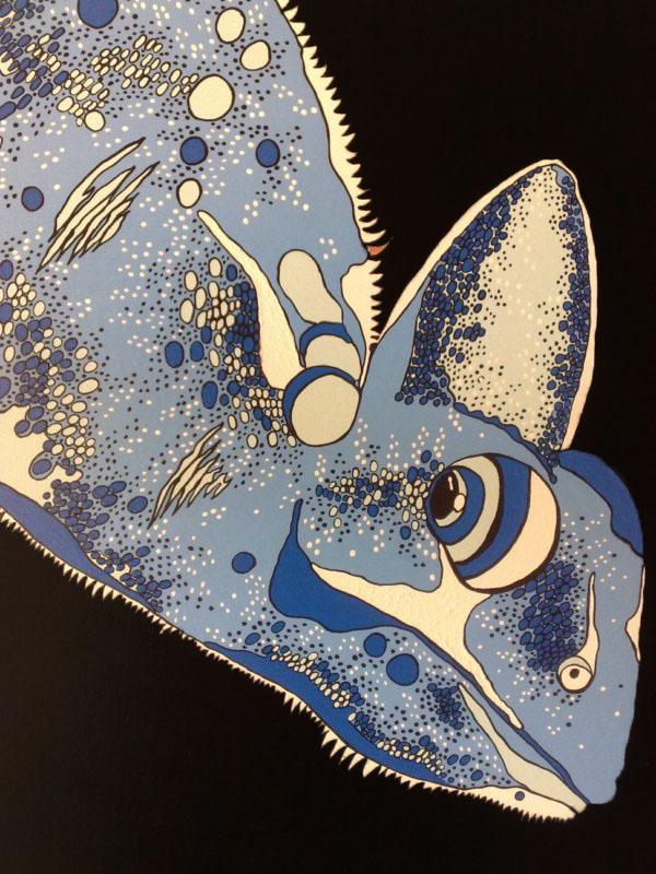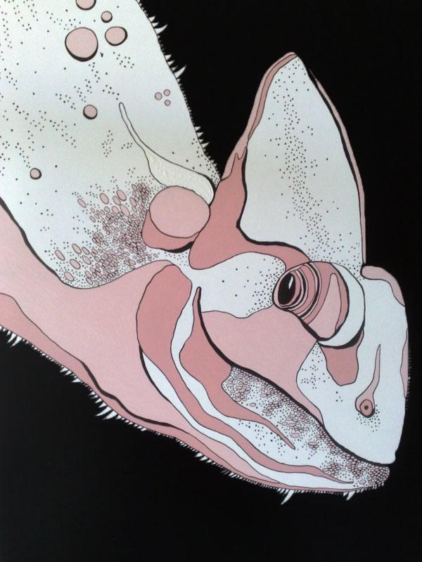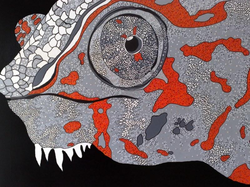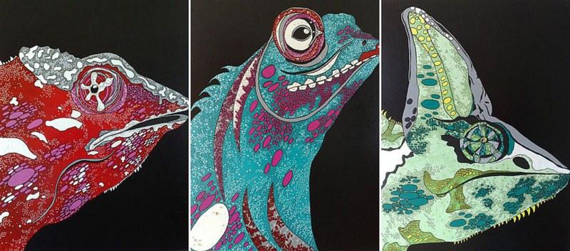La mostra, curata da Renata Maccato, s’intitola Mutanti, in riferimento ad una pittura che ruota da anni attorno al tema della trasformazione, raccontato attraverso la figura del camaleonte che incarna la capacità di adattarsi e reinventarsi, fondamentale nella società contemporanea.