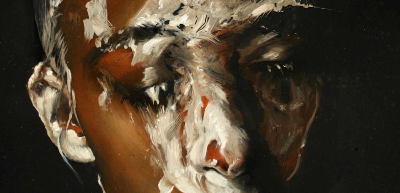 I corpi gridati di Dario Puggioni si coprono di una velata malinconia, nei toni cupi che li riducono a esili fantasmi retti su barcollanti impalcature ossee. Laddove la luce taglia l’immagine, la visione è portata a spingersi nelle pieghe delle ombre che si confondono con lo sfondo in secondo piano, dove lo sguardo finisce col perdere ogni punto di riferimento. Indiscutibilmente il corpo emaciato e dilaniato dell’artista, nella sua tragica contemporaneità, contrasta con la quotidianità mediatica ove, dotato di un’apparente perfezione, è messo alla mercé di acquirenti affamati di vuoti estetismi. Solitarie e affrante le sagome galleggiano sospese in pose di grande tensione, al punto che i muscoli e i fasci di nervi pare possano da un momento all’altro stracciare la stessa pittura