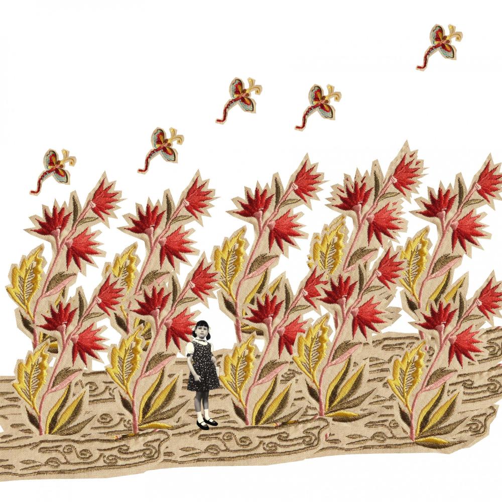 “Spesso nell’immaginario collettivo la fotografia viene associata a mera testimonianza e documentazione passiva di un momento concluso nel tempo e nello spazio. Maria Antonietta Scarpari tramite il photocollage riscatta il linguaggio fotografico da questa visione limitante per innalzarlo a strumento di espressione artistica. L’artista ha fotografato particolari di stoffe in tessuto semplice, appartenenti al tempo delle nostre nonne, li ha riassemblati creando delle composizioni con prati, fiori, farfalle e mongolfiere e vi ha sovrapposto degli scatti che la rappresentano da bambina. L’effetto provato dallo spettatore è di trovarsi al confine tra sogno e realtà, ci si muove in un mondo fiabesco, onirico, ma quale strumento, se non quello fotografico, potrebbe rendere più viva e reale una dimensione interiore, nascosta, legata al passato, il quale, grazie alla sensibilità dell’artista, viene riattualizzato? La fantasia viene così calata nella realtà, creando una metafora di quell’opera magica che è la vita”.