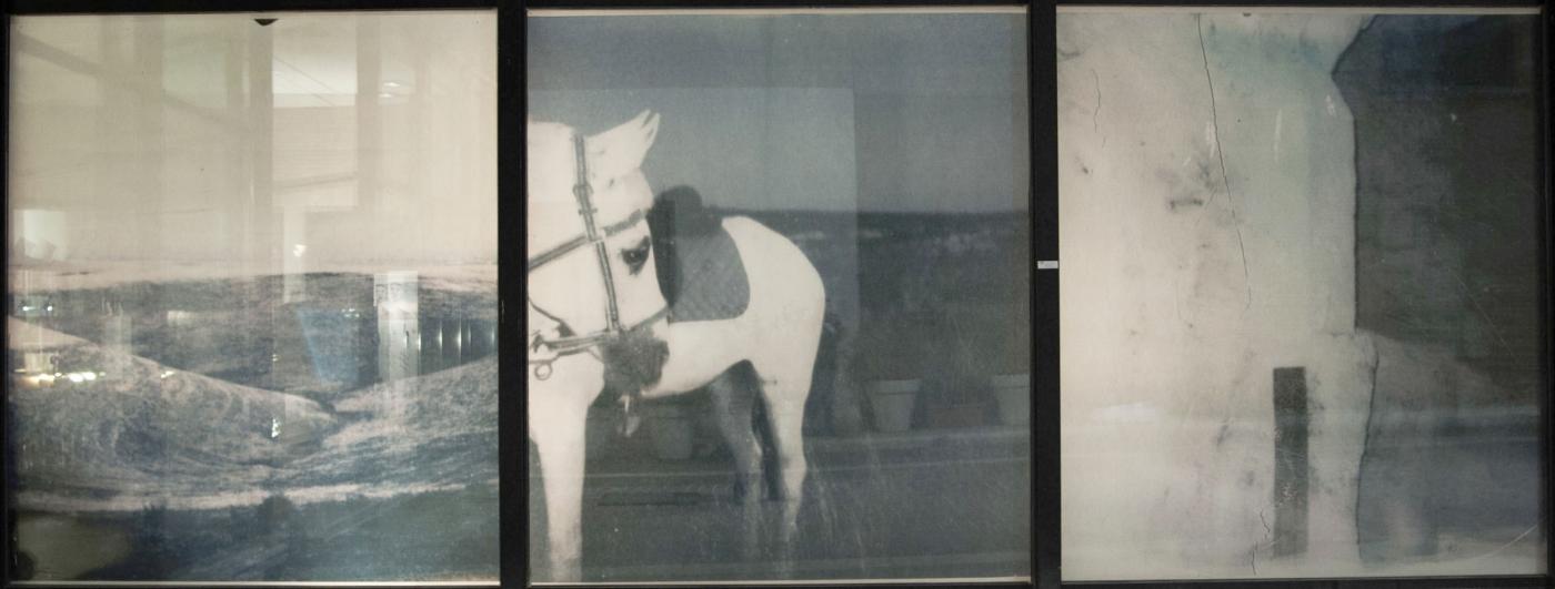 L’installazione di Annalisa Gonnella, intitolata “Senza titolo (soggetto impersonale del verbo essere)” consta di tre polapressure (intervento istantaneo sullo sviluppo dell'immagine, dove la stessa viene manipolata con acidi per ottenere effetti unici e sorprendenti) riprodotte in grandi dimensioni.
