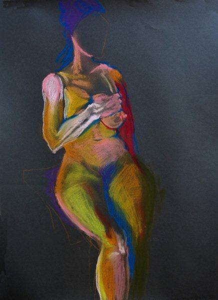riprende lo studio del nudo a carboncino e pastello colorato, esponendo in mostre personali nel