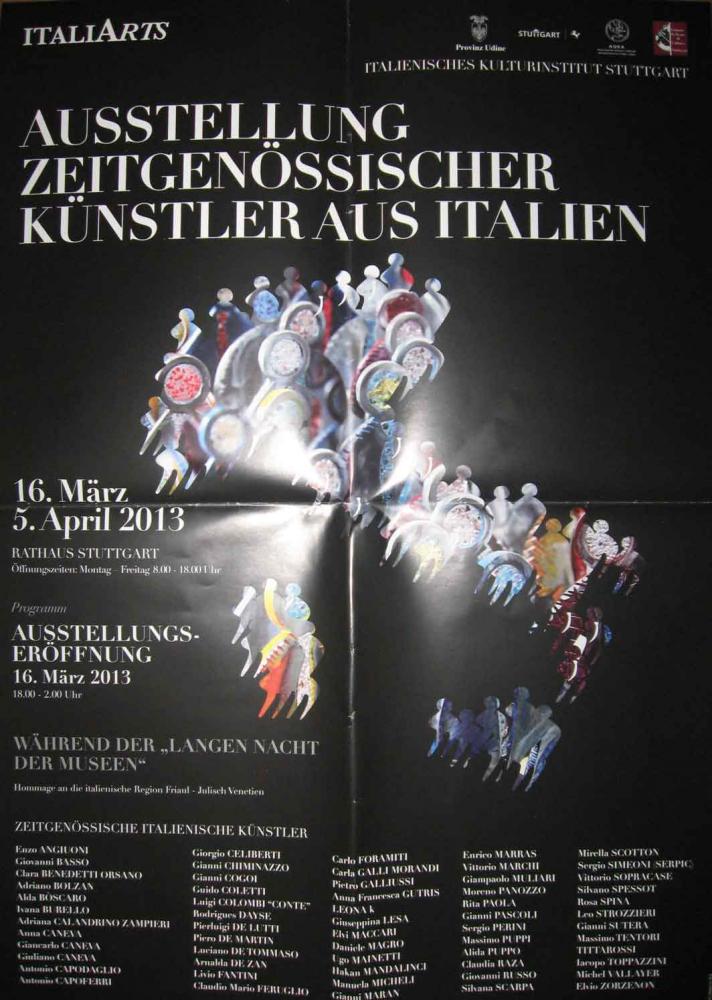 L’artista “CONTE”, partecipa ad ITALIARTS con ISTITUTO DI CULTURA ITALIANO presso i SALONI del MUNICIPIO di STOCCARDA (GERMANIA) dal titolo ARTISTI ITALIANI CONTEMPORANEI nel mondo, dal 16 MARZO al 5 APRILE 2013