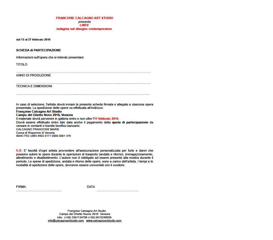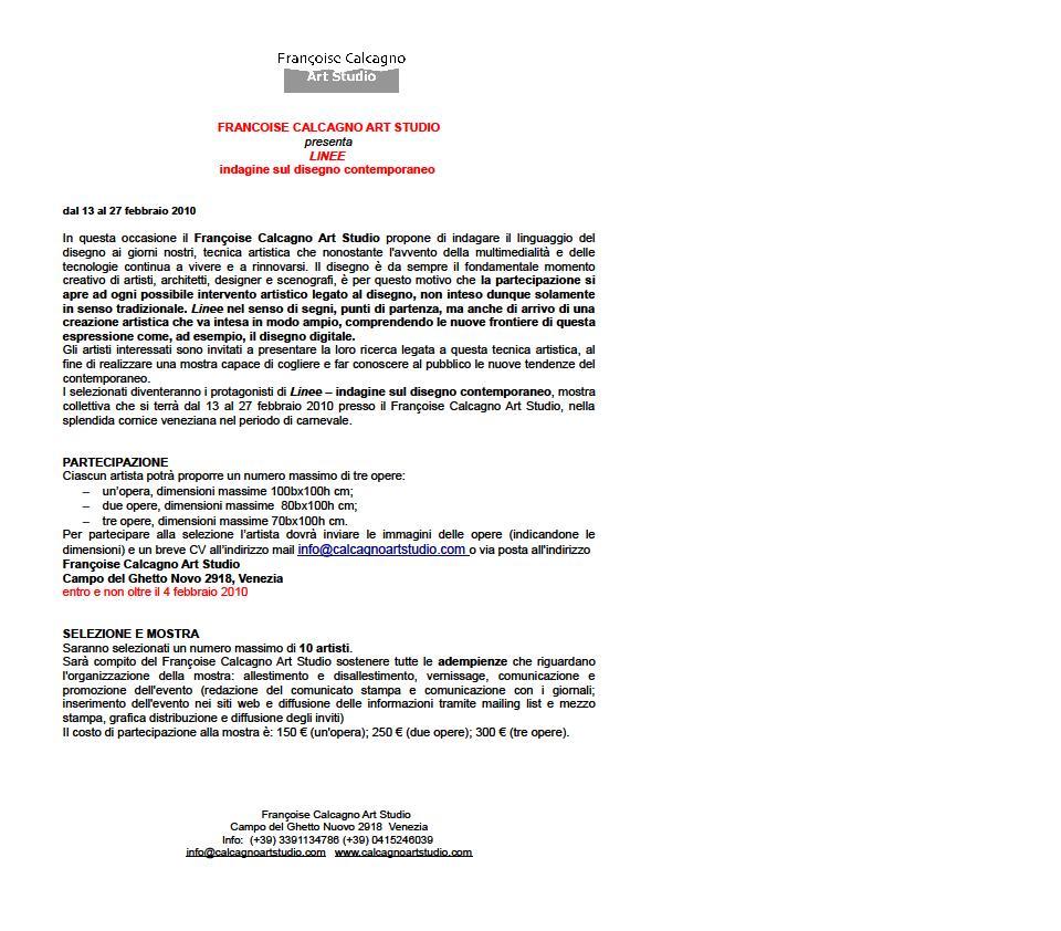 collettiva che si terrà dal 13 al 27 febbraio 2010 presso il Françoise Calcagno Art Studio, nella