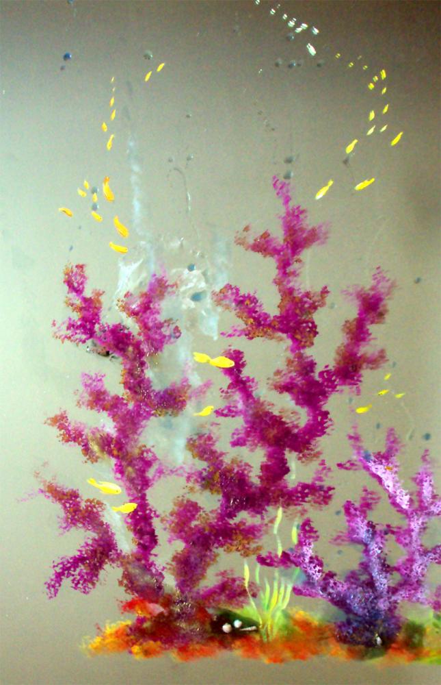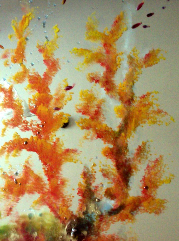 Il titolare Raffaele Donnarumma ha optato per un arredo tutto artistico con opere in muratura a rilievo in grigio e rosso che richiamano strati di lava solidificata con venature di magma che affiora. Questi ed altri effetti decorativi sono opera di Roberto Maretti e Marcos De Oliveira, muratori decoratori di alta qualità. Sulle pareti dei due locali principali, bar e sala giochi, invece, sono appesi enormi specchi decorati a coralli e fondali marini di creazione dalla pittrice mantovana Barbara Ghisi. Una scelta tutta artistica quindi per omaggiare con l'arte la città del famoso e storico Premio Suzzara.