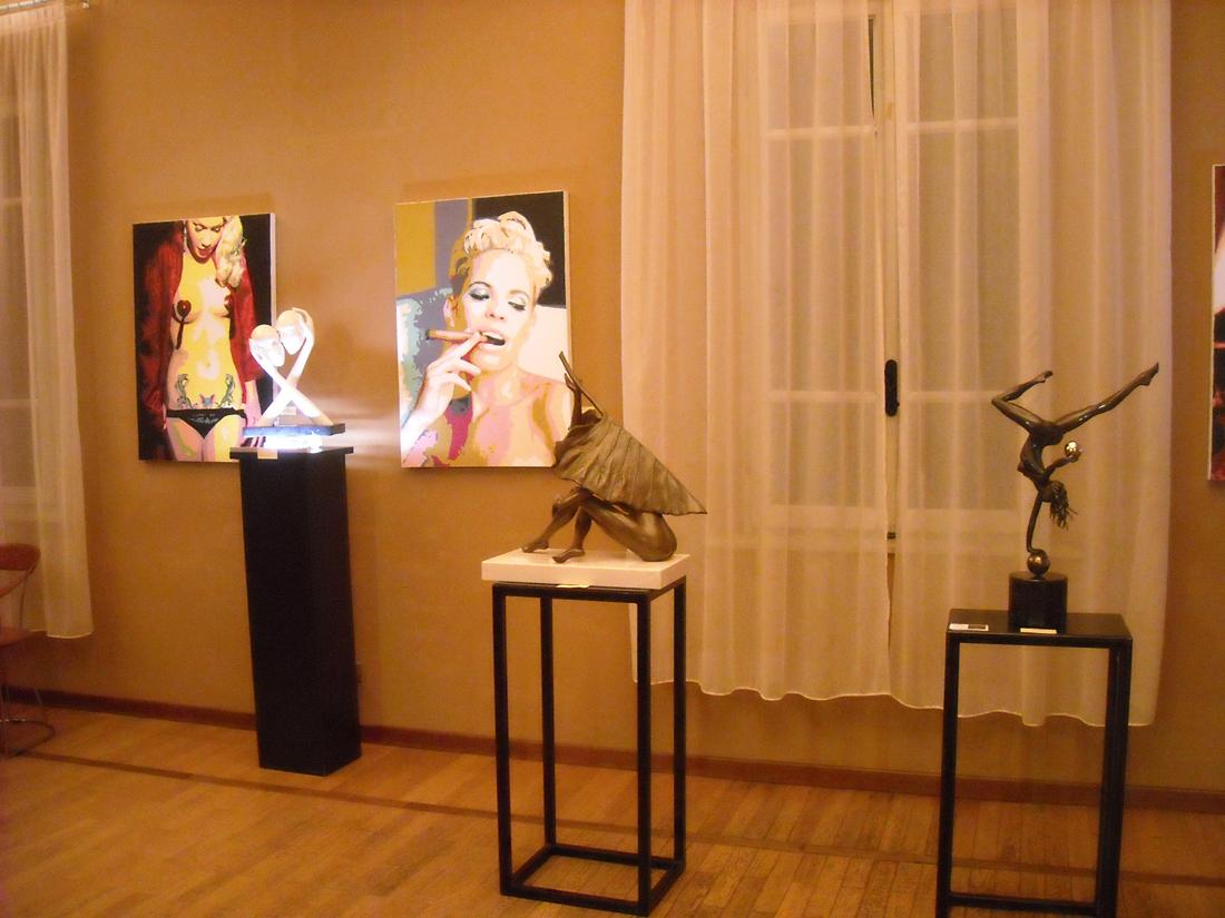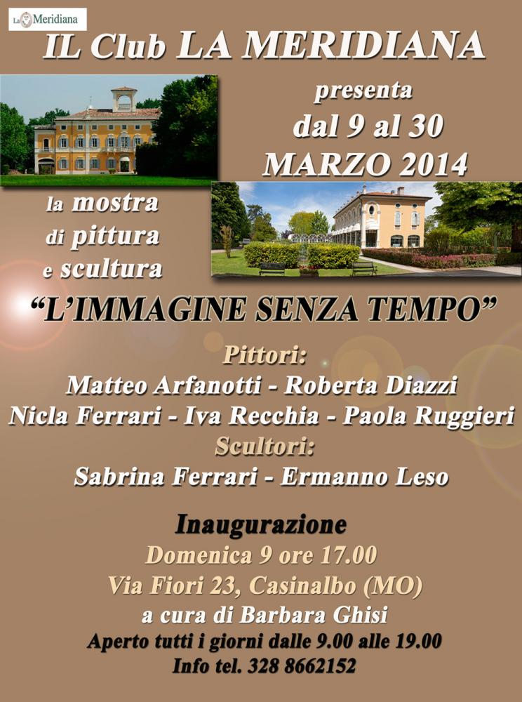 Ancora una volta nelle splendide sale della villa del Club la Meridiana di Casinalbo (Modena) si inaugura una collettiva di tutto rispetto. "L'immagine senza tempo" è il titolo della mostra che propone attraverso opere di pittura e scultura la figura umana e la sua molteplice rappresentazione. La mostra a cura di Barbara Ghisi sarà presentata al pubblico domenica 9 marzo alle ore 17.00 e resterà in visione fino a fine mese. Si ripropone l'artista modenese Roberta Diazzi con opere completamente nuove che trattano in stile Pop art il tema della sensualità femminile attraverso il gioco ammiccante del Burlesque. L'artista pluripremiata anche all'estero è all'interno di gallerie molto importanti, come la Carrè Dorè di Monte Carlo e la Mazzoleni Art Gallery di Bergamo. E' reggiana di Cavriago invece la pittrice Nicla Ferrari. Diplomata disegnatrice stilista all’Istituto Professionale di Reggio Emilia svolge attualmente la professione collaborando con varie case di moda. In contemporanea tiene corsi di disegno e pittura ad olio. Nel 2013 ha partecipato alla mostra "Jean Cocteau et le mot" presso il Centre du Livre et du Tourisme a Bécherel in Francia. Sempre dalla provincia di Reggio Emilia ma da Correggio giunge Paola Ruggieri. Diplomata all’Istituto d’Arte di Parma attualmente lavora nel campo della grafica pubblicitaria e della comunicazione. Molto d’effetto sono le sue immagini femminili a tecnica mista dove al colore ad olio sono mischiati acrilico e materiali vari quali tessuti, carte o figlie atte ad accentuare l’espressione e il carattere del personaggio rappresentato prevalentemente in bianco e nero. Da Verona giungono la pittrice Iva Recchia e gli scultori Sabrina Ferrari ed Ermanno Leso. Iva Recchia si è diplomata all'Accademia di Belle Arti ed è stata assistente del noto artista Vincenzo Balsamo. E' vincitrice di numerosi premi tra i quali quello della fondazione Bevilacqua La Masa di Venezia del 2006, con premiazione di Philippe Daverio. La sua pittura è una sintesi di pennellate precise e dirette che centrano la personalità del soggetto rappresentato. Sabrina Ferrari ha insegnato materie plastiche presso il Liceo Artistico di Verona. Ha collaborato con lo scultore Isac Kahn dopo l'approfondimento delle tecniche della fusione del bronzo. Le sue sculture sembrano dotate di vita. Dinamiche e perfette nella loro eleganza. Numerosi suoi bronzi sono in collezioni private sia in Italia che all'estero. Ermanno Leso è stato allievo dello scultore Sergio Capellini che gli ha trasmesso il grande amore per il modellato e la scultura in bronzo. Con la scultura riesce a cogliere l'elemento di armonia della vita. Dal 2014 fa parte della Società Belle Arti di Verona e del Gruppo Nardi Amici dell’arte. Matteo Arfanotti è Nato a Sarzana (La Spezia) ed è laureato in architettura presso l'Università degli Studi di Firenze. Tra disegno e pittura, tra installazioni e scenografie, tra architettura e design si destreggia con bravura e personalità. I personaggi delle sue tele sembrano figure totemiche che esprimono emozioni e turbamenti attraverso un linguaggio fatto di magia, sogno e mistero. L’artista premiato a Pörtschach in Austria è attualmente campione mondiale di Body Painting. Mostra da non perdere! Info cell. 328 8662152.